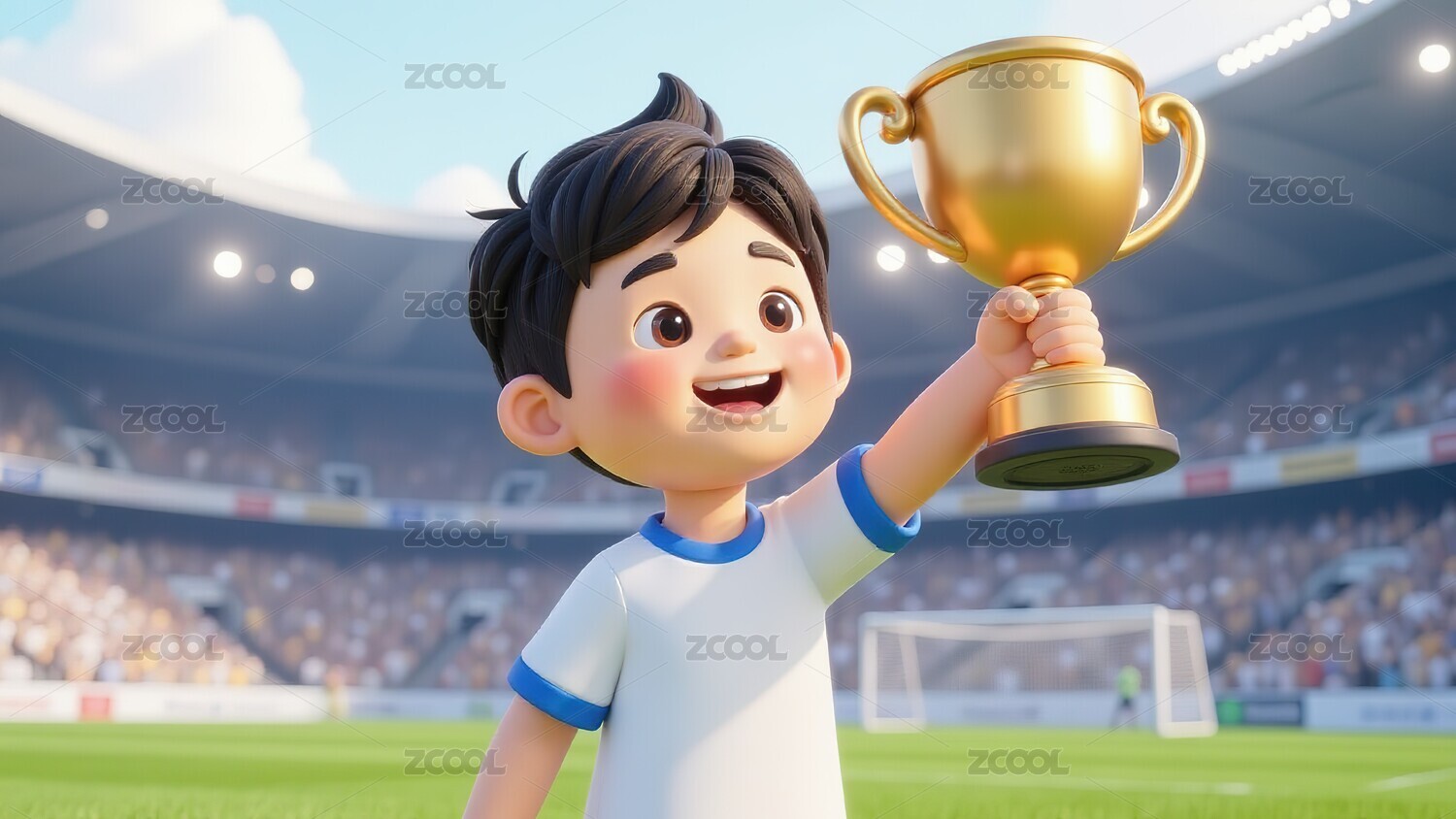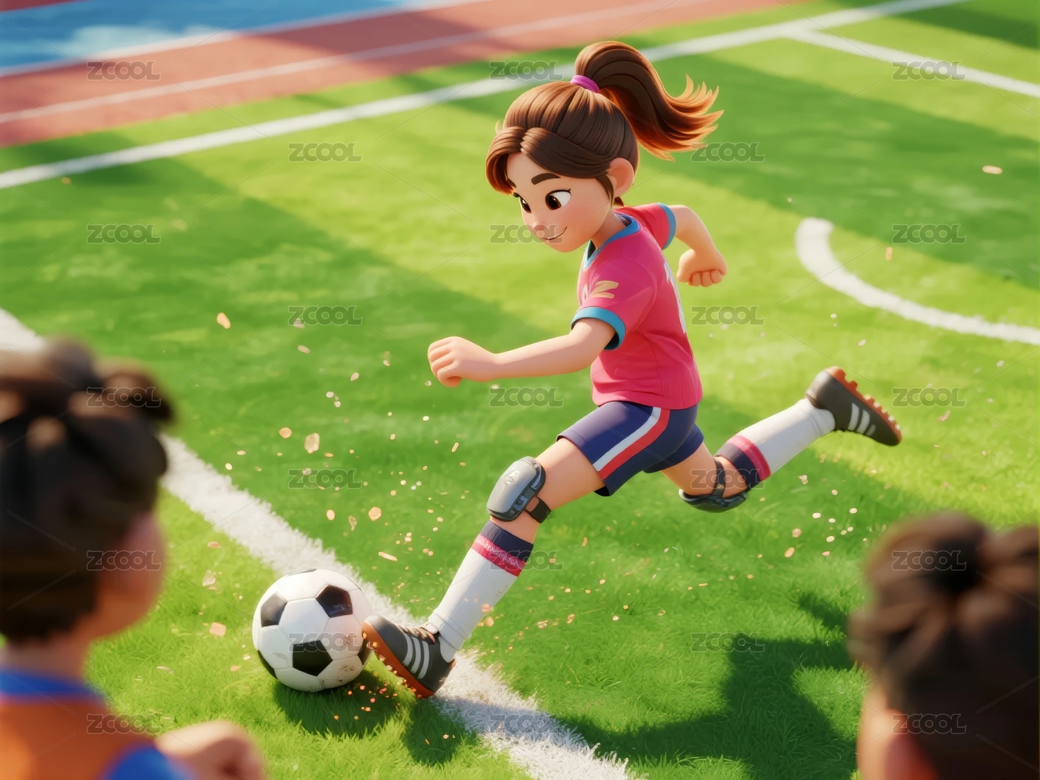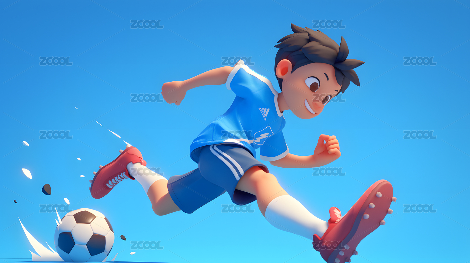几个可爱的穿运动服的男孩在足球场上踢足球