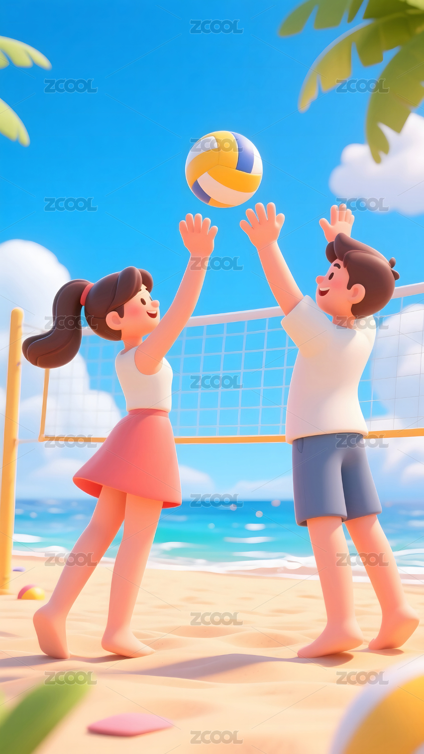 夏天,夏季,炎热,沙滩,海滨,大海,海洋,排球,打排球,比赛