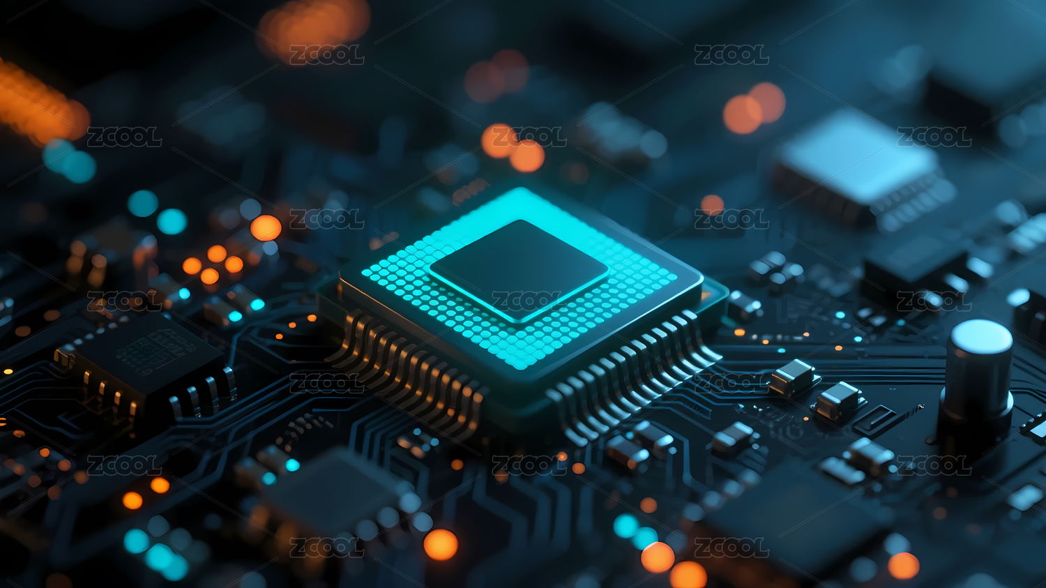 蓝色光效芯片科技感电路板