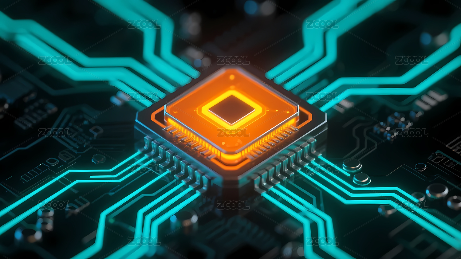 芯片,发光,蓝色,橙色,电路板,科技,背景,电子,光芒,深蓝