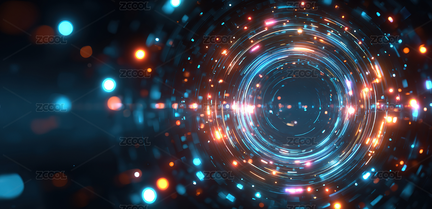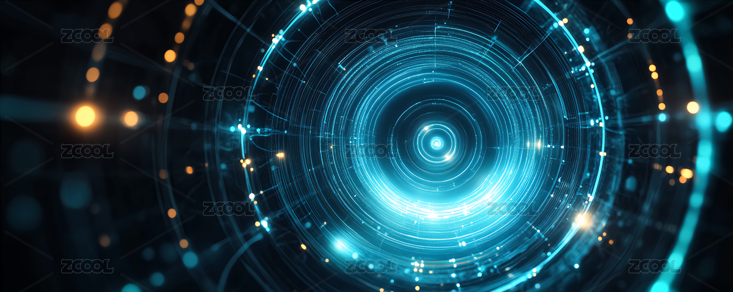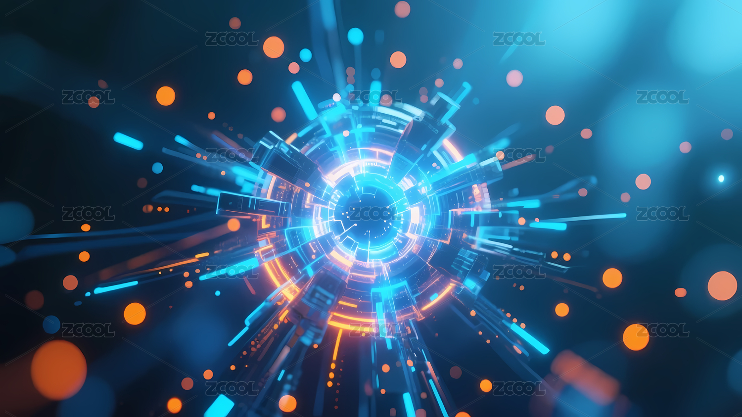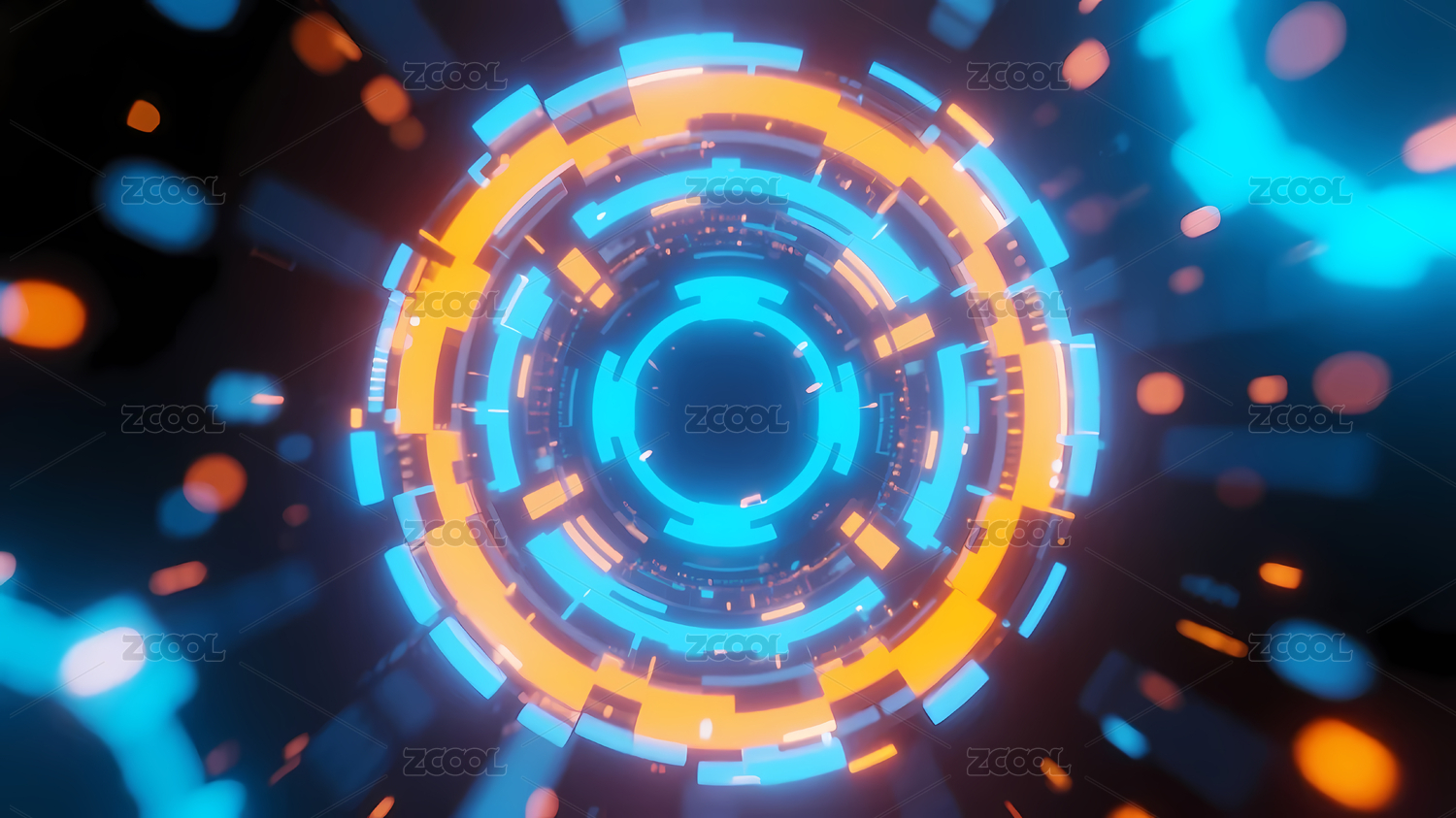 发光,蓝色,橙色,科技,未来,背景,圆形,结构,模糊,深蓝