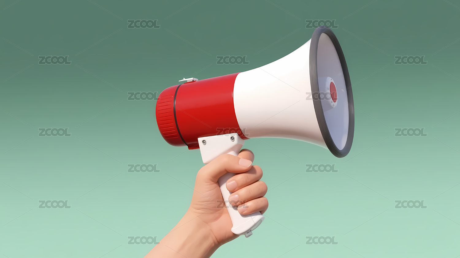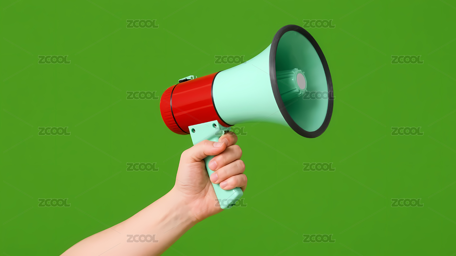 白色,背景,红色,物体,手,简洁,扩音器,浅绿,握持,统一