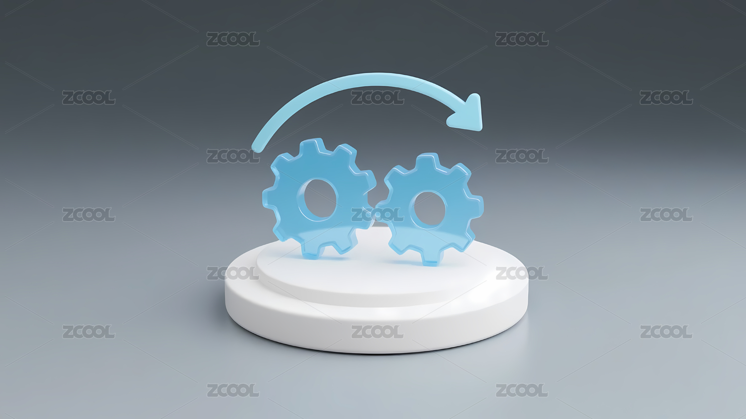 透明蓝色齿轮箭头