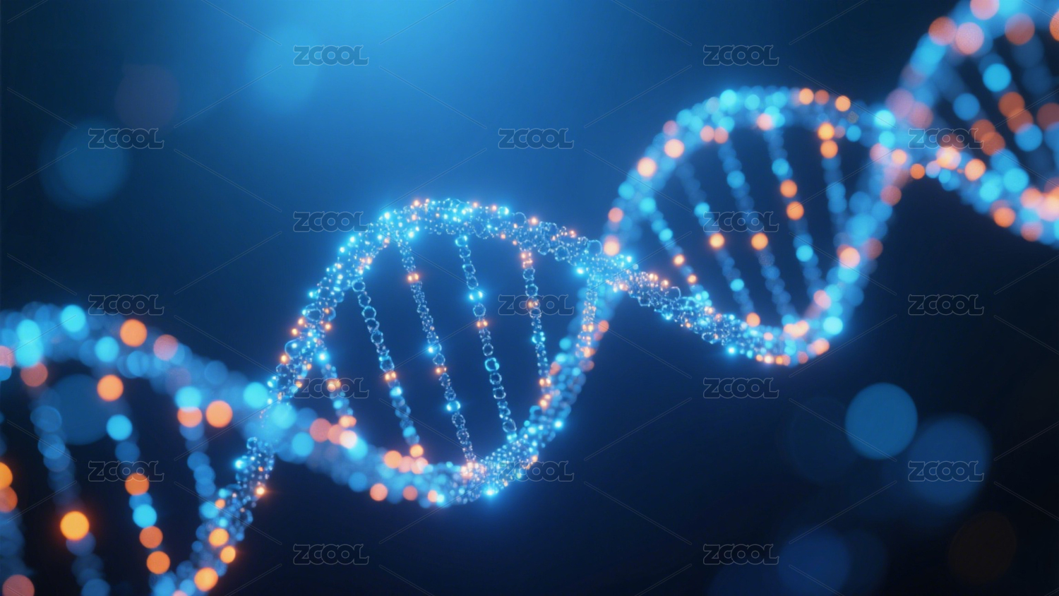 黄色,橙色,蓝色,背景,深色,DNA,分子,双螺旋,光斑,小球