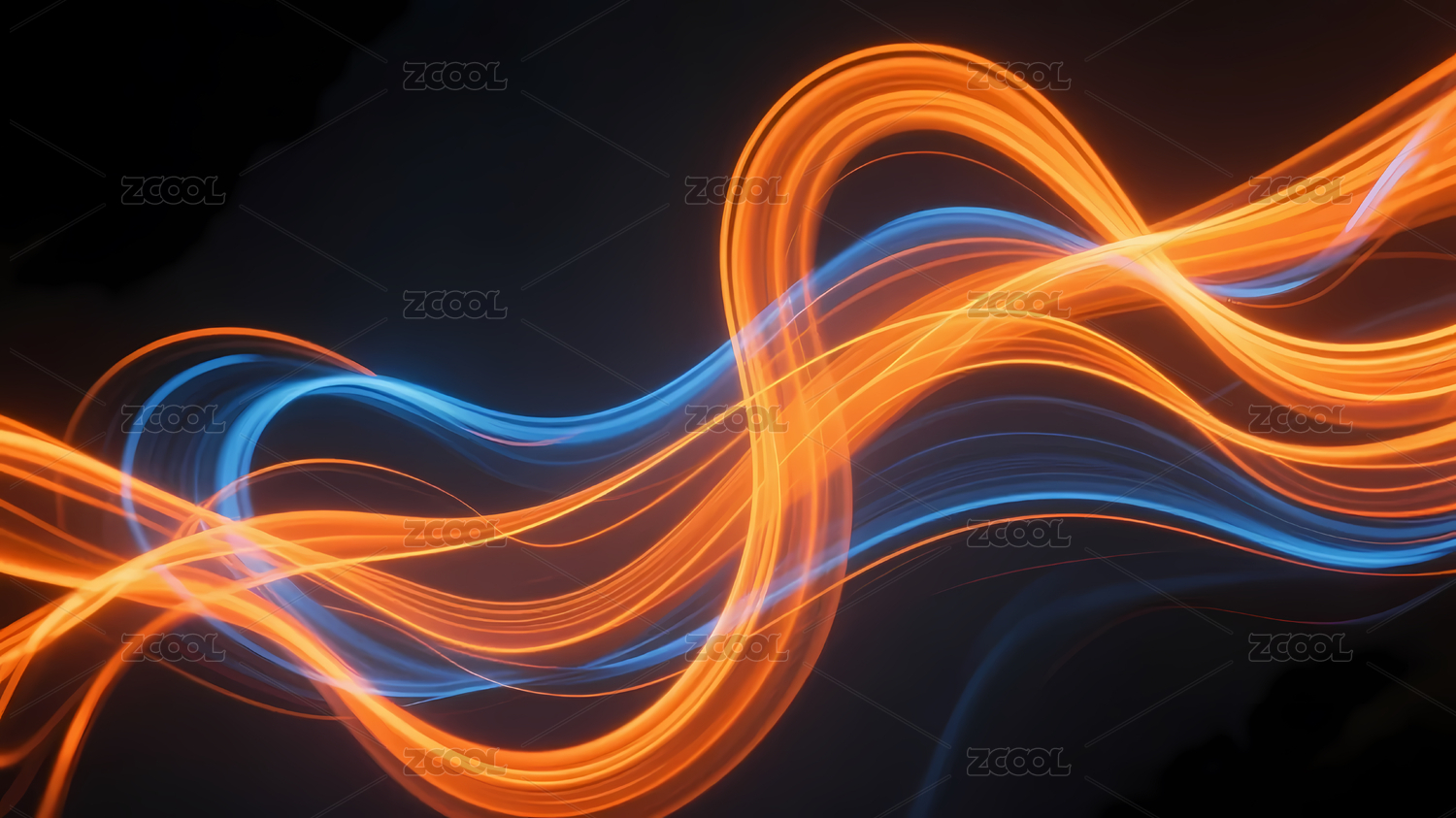 蓝色,背景,动态,视觉,橙色,黑色,对比,流动,曲线,交织