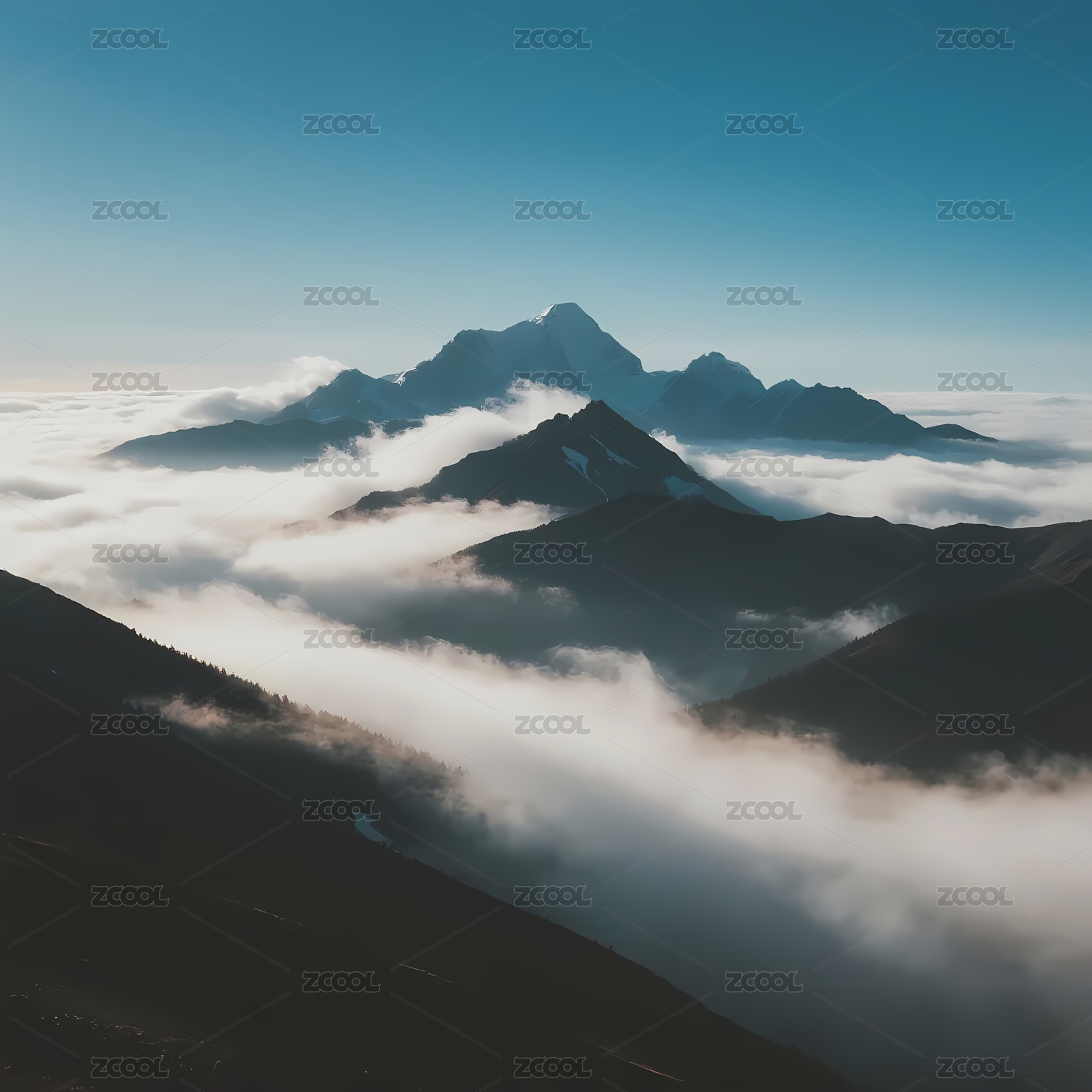 背景,橙色,紫色,自然,云雾,天空,山脉,连绵,薄雾,景色