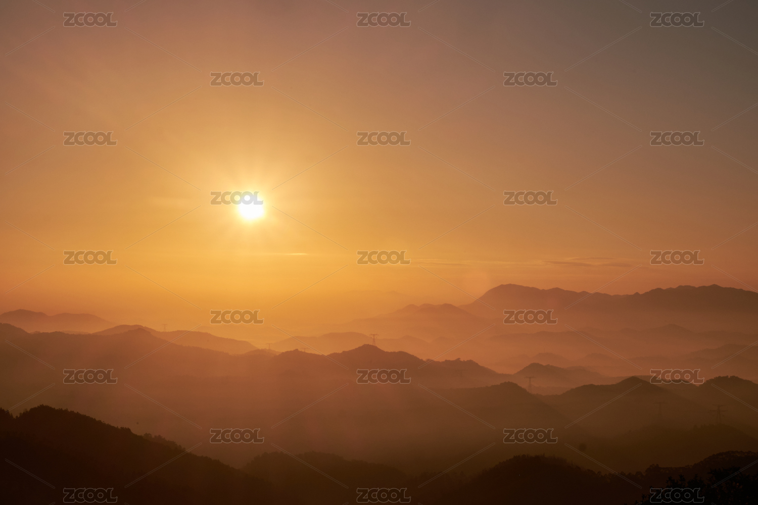 夕阳,山脉,天空,紫色,橙黄色,渐变,连绵,远处,自然,柔和