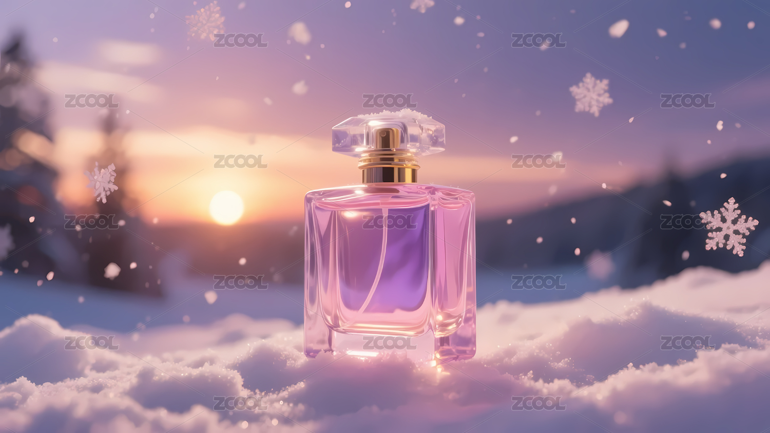 蓝色,背景,树木,白色,香水瓶,透明,雪花,飘落,冷色,雪景
