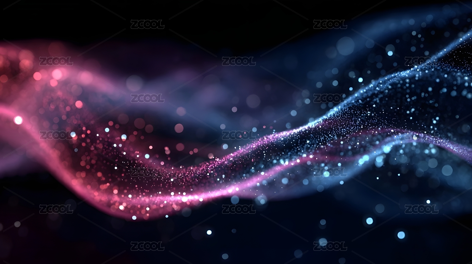 流动的曲线与粒子3D渲染,抽象蓝色现代背