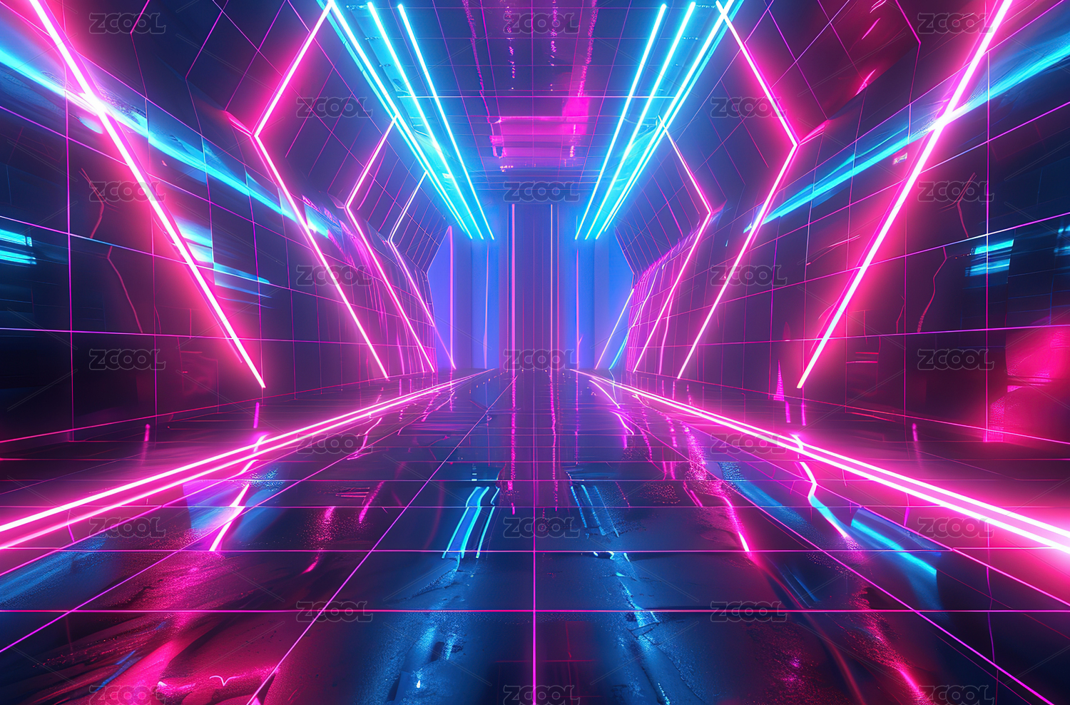 抽象霓虹灯光建筑空间走廊背景时尚朋克摇滚