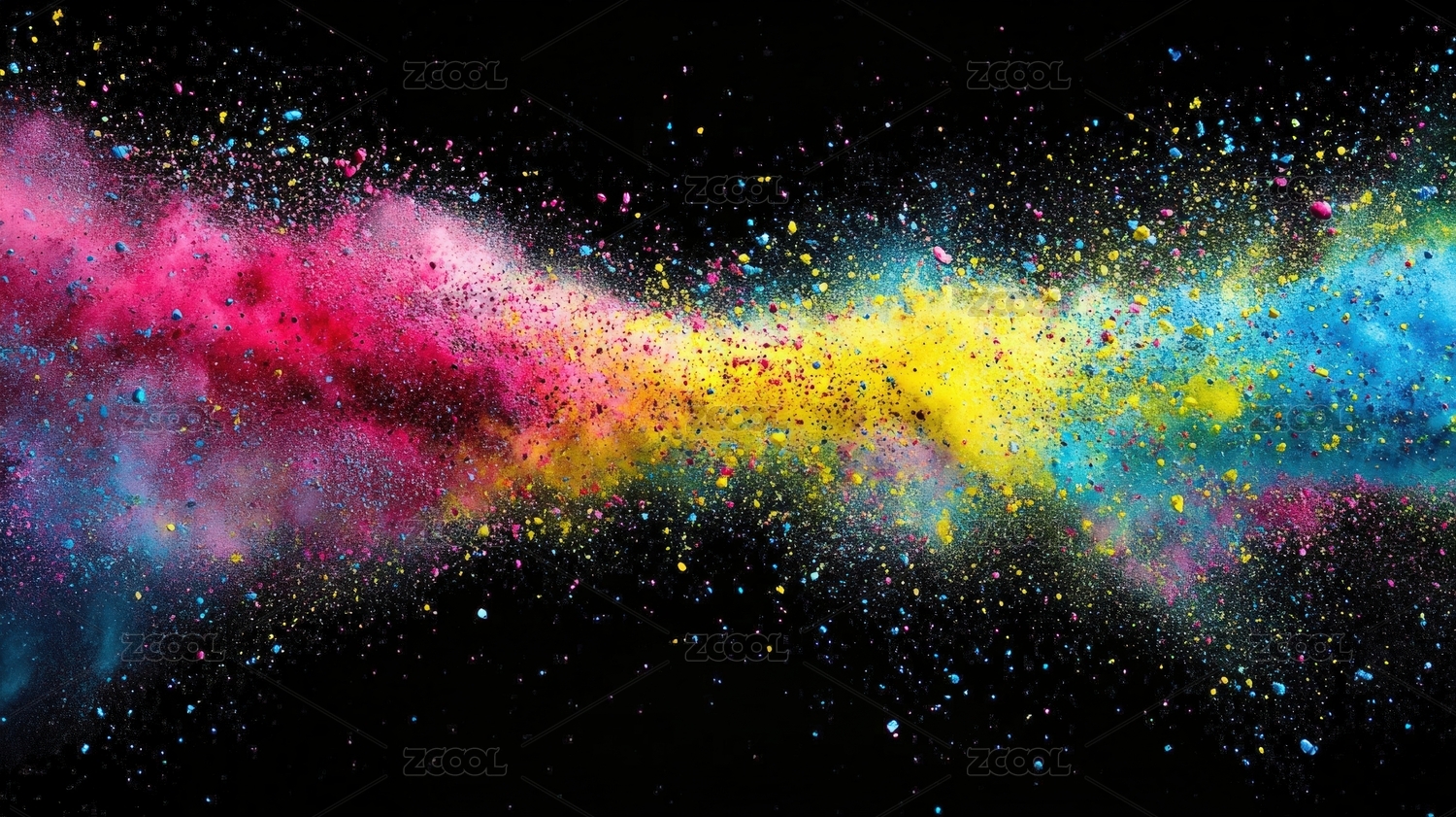 彩色粉末涂料在白色背景下飞溅的特写镜头