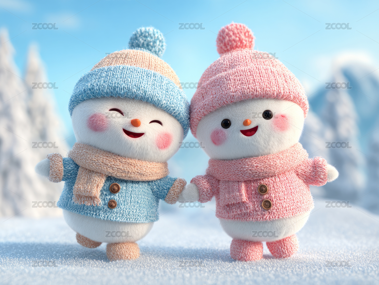 两个可爱卡通雪人