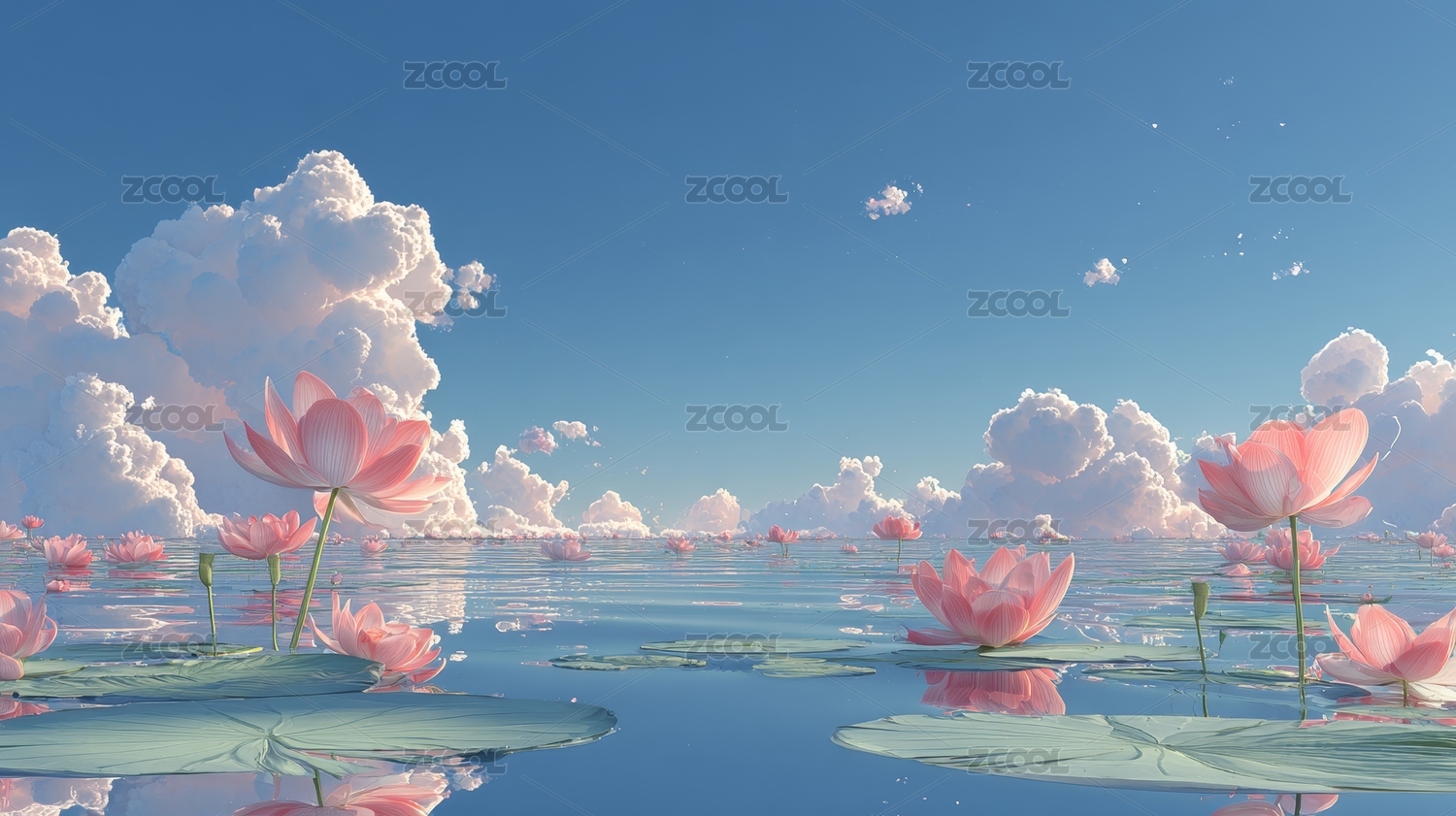 夏日荷花荷叶卡通小清新国风小暑节气插画