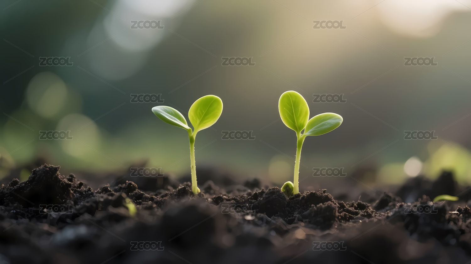 一株嫩绿幼苗从肥沃土壤中破土而出