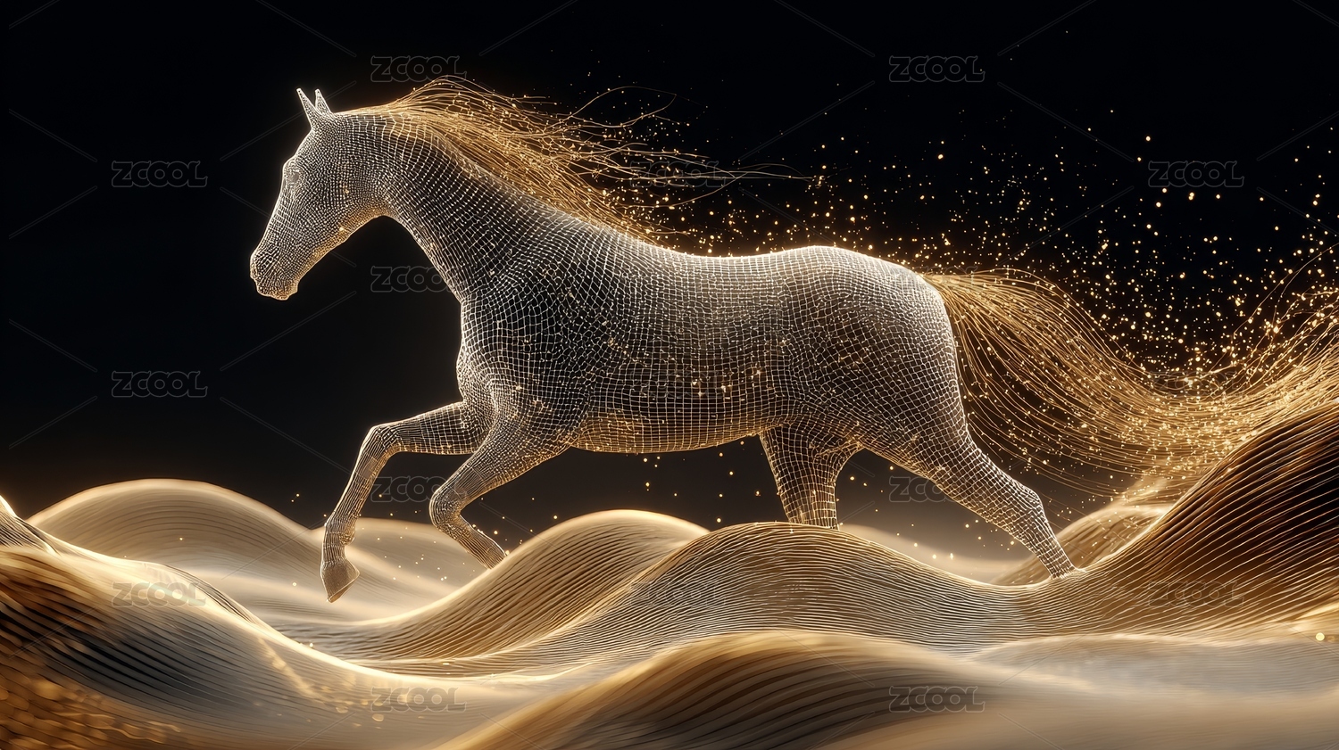 白色,自然,数字艺术,金色,能量,力量,动态,马,金粒子,抽象