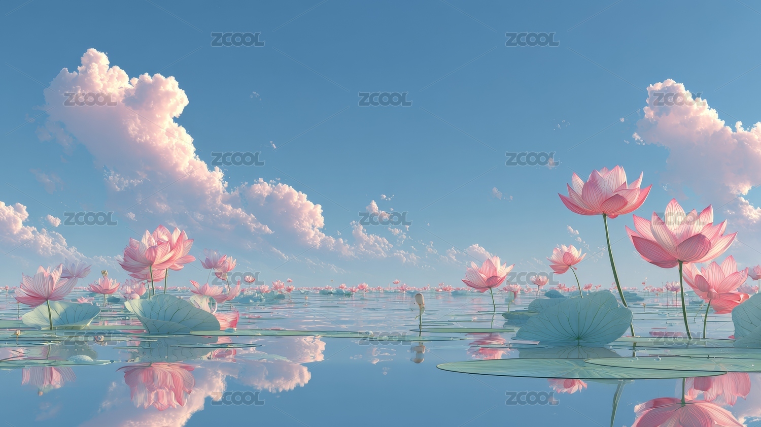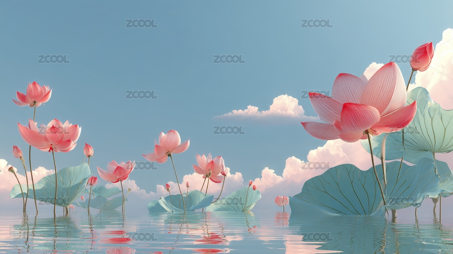 夏日荷花荷叶卡通小清新国风小暑节气插画