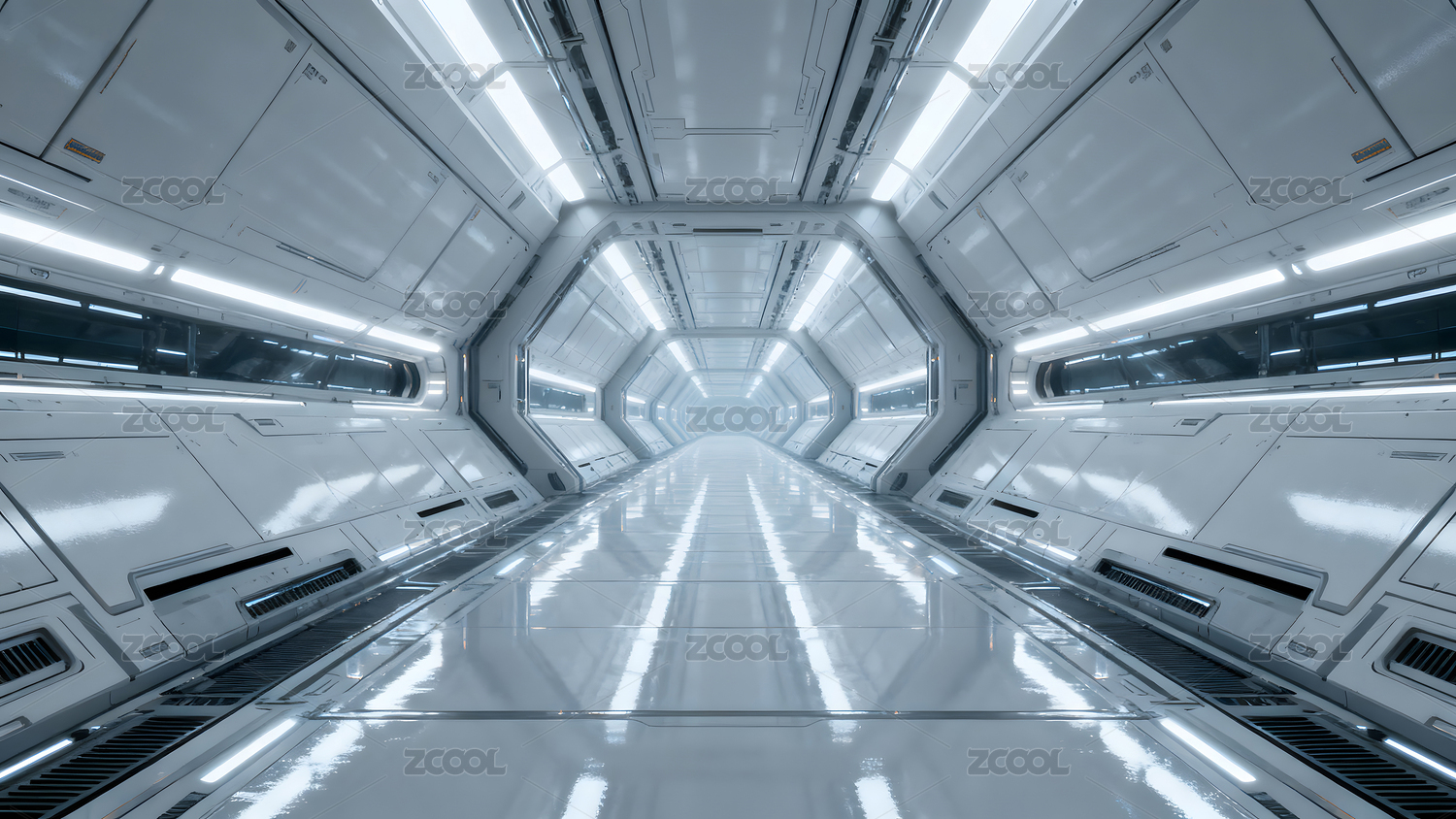 未来感太空船走廊内部设计