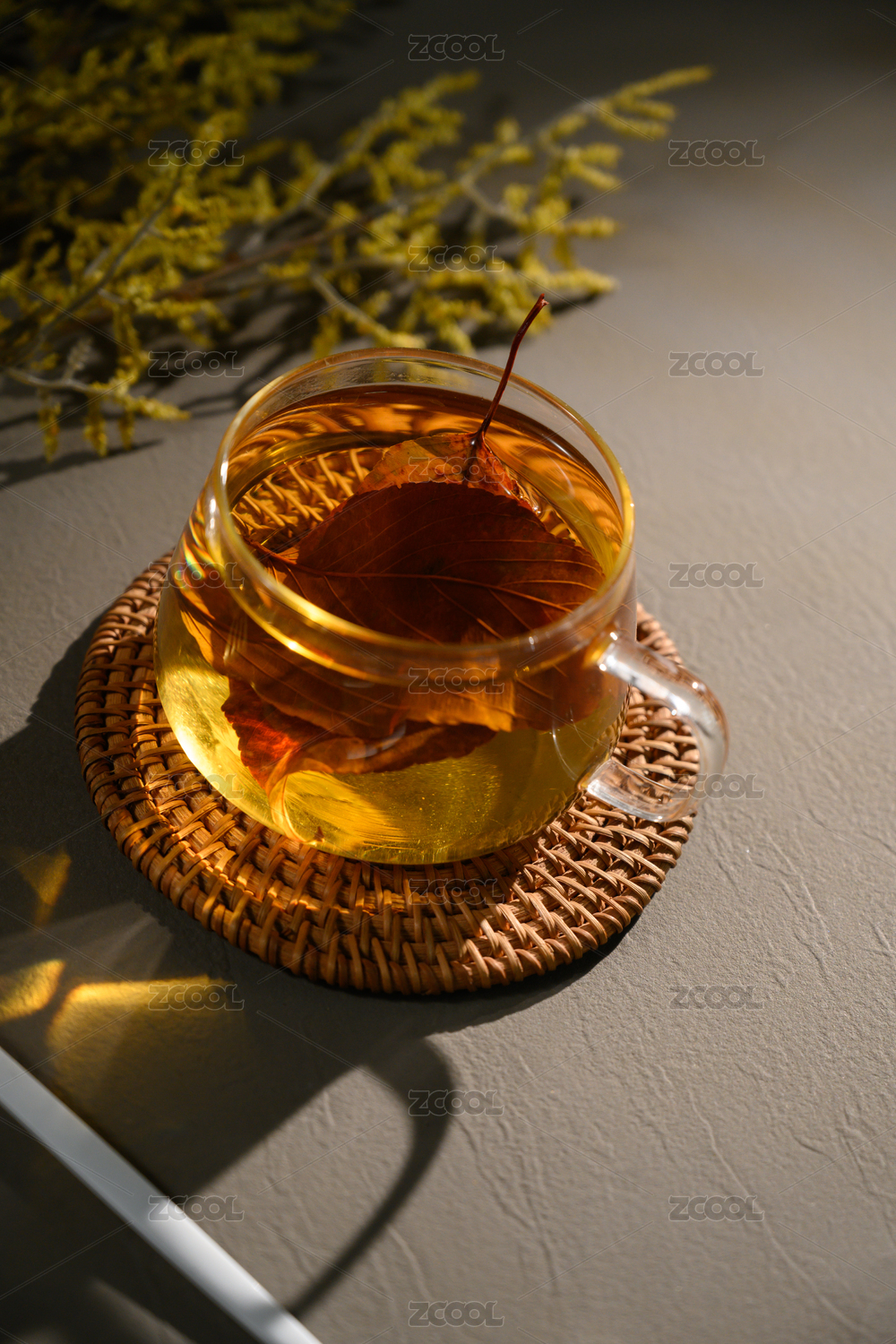 桌面上的盘子里的甘甜可口的山楂叶茶