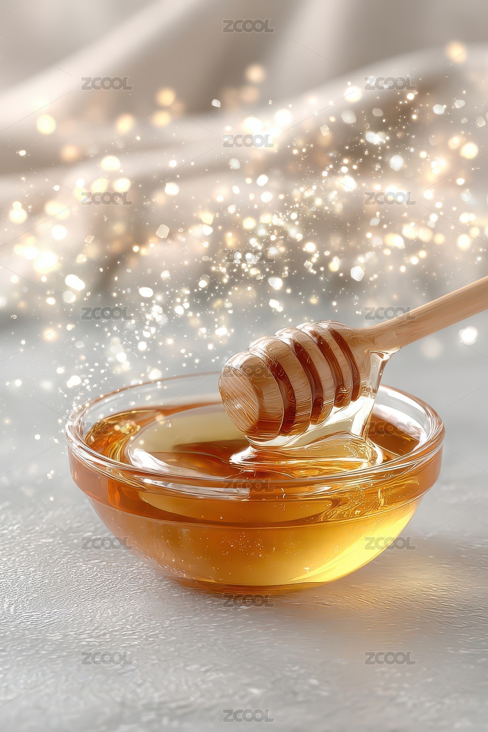 蜂蜜缓缓滴入玻璃碗的温馨场景