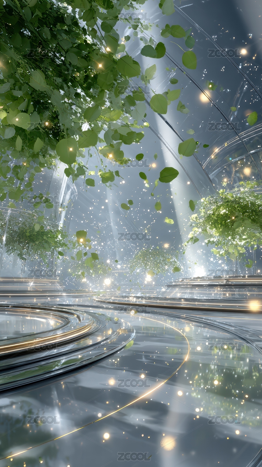 科技,未来,建筑,线条,光线,玻璃,绿植,森林,空间