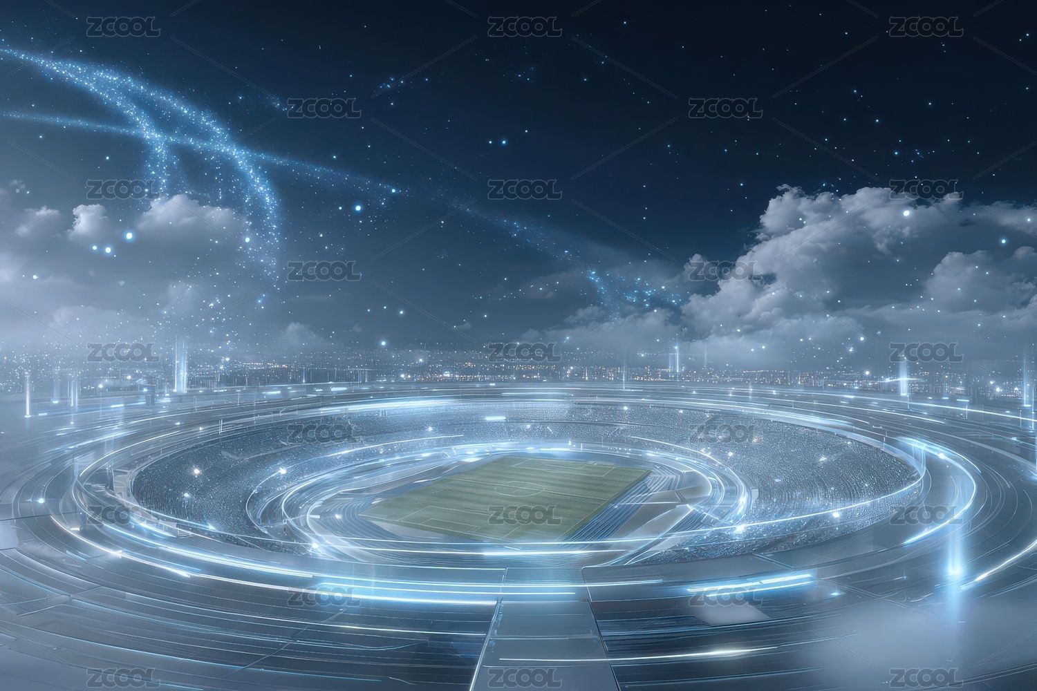 星空,科技,未来,灯光,体育场,夜空,银河,圆形