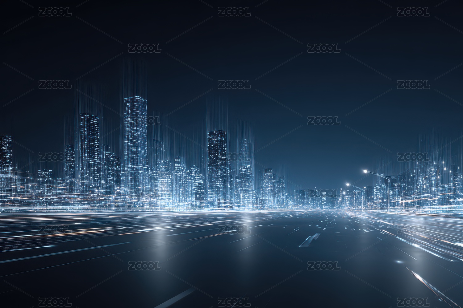 城市,道路,科技,未来,高楼,光束,夜景,流光