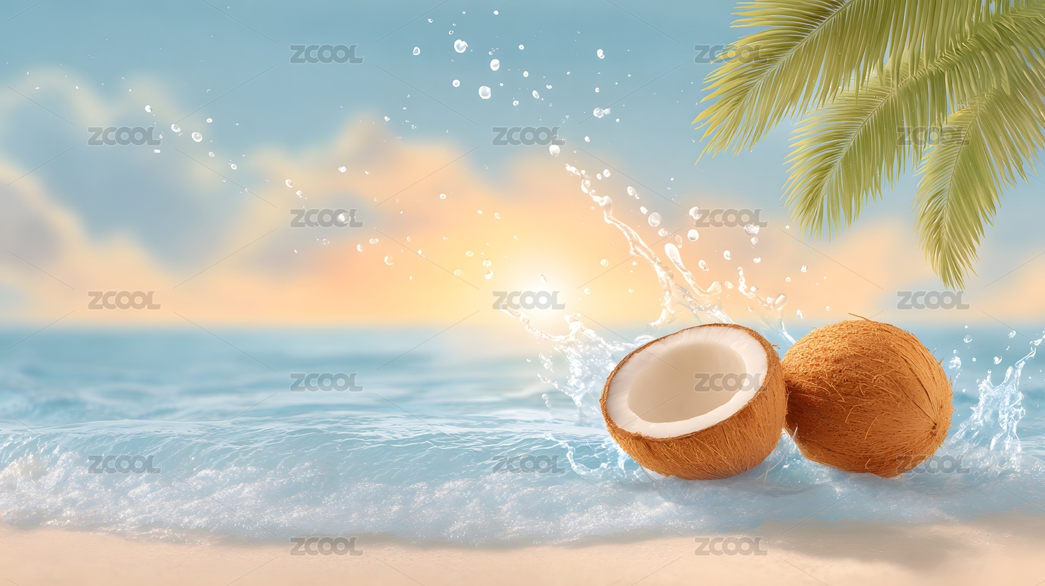 椰子,自然,蓝色,背景,水花,泡沫,清新,裂开,水体