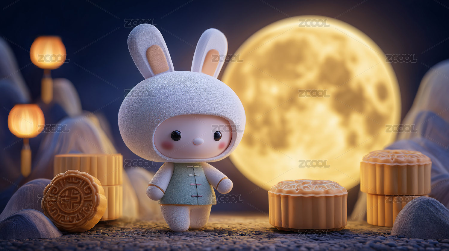 中秋节,玉兔,月饼,美食,糕点,3D,模型,立体,灯笼,月亮