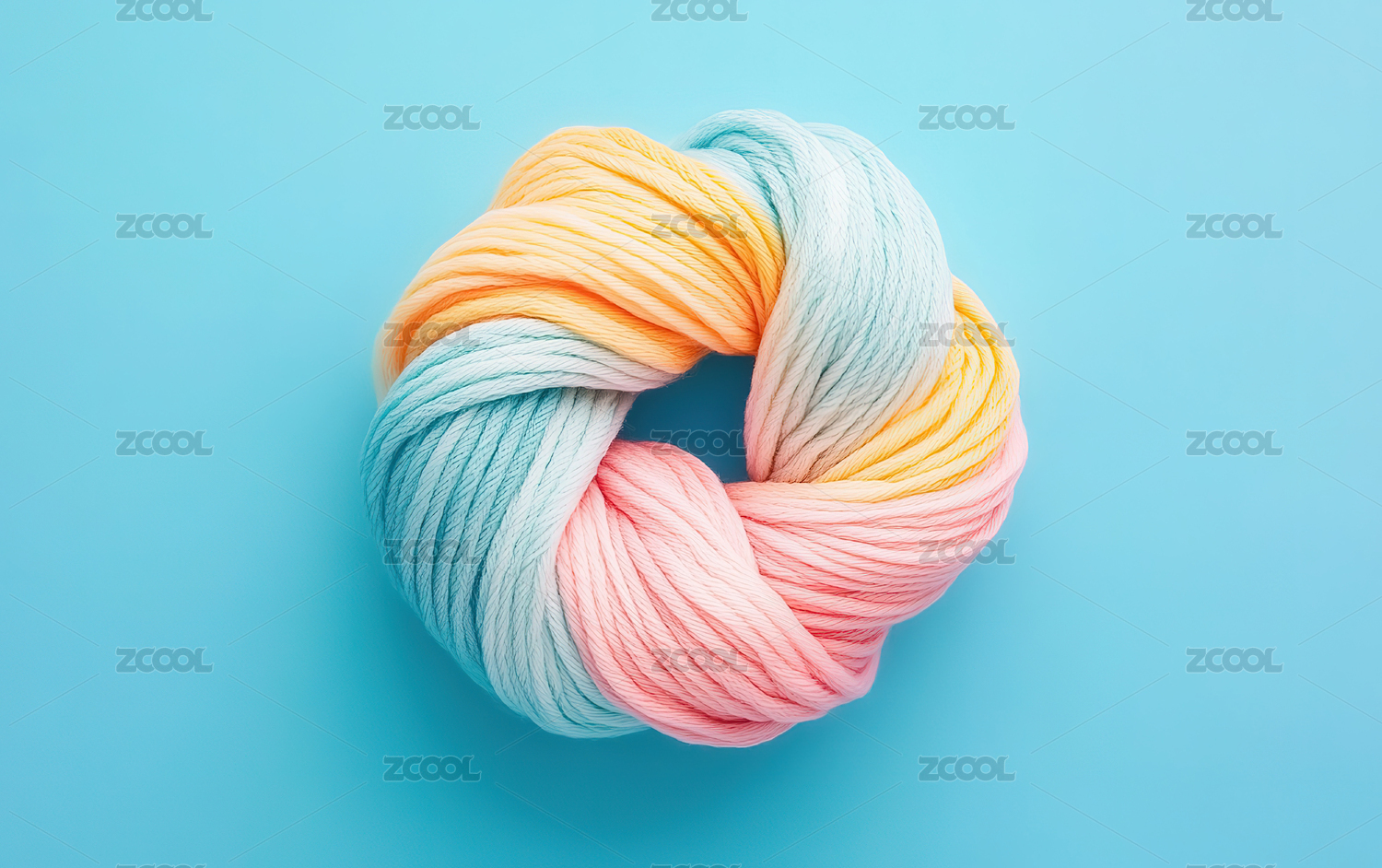 彩色绳结置于蓝色背景