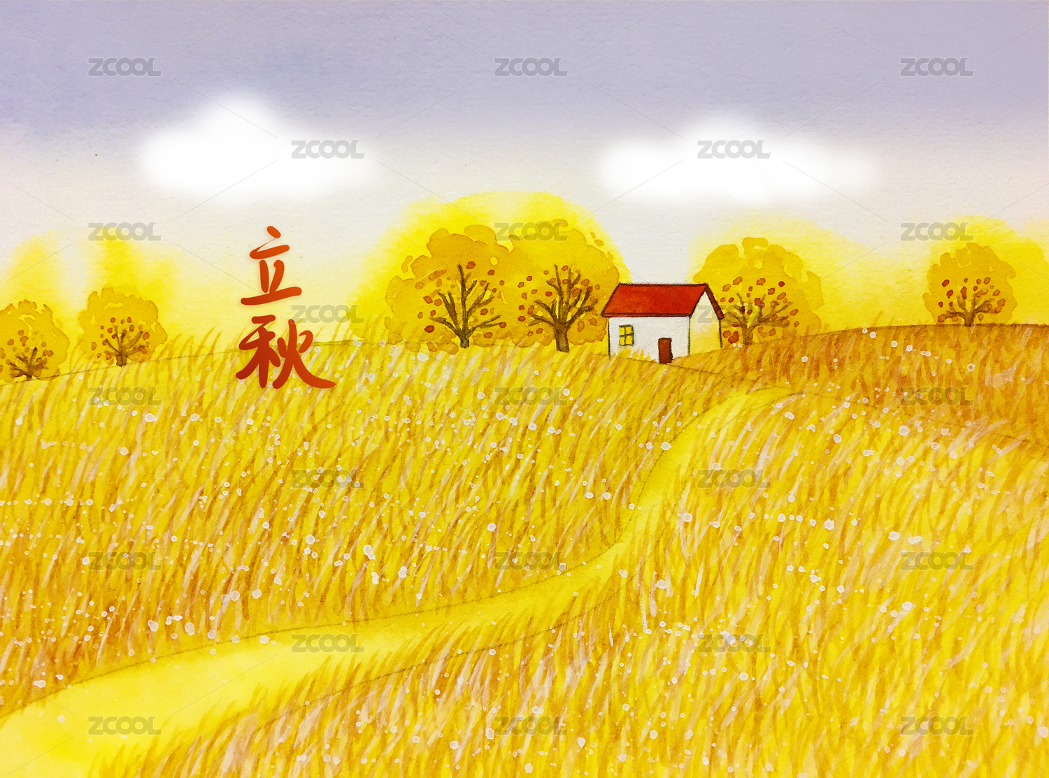 立秋,秋,处暑,大暑,丰收,节气,白露,霜降,插画,海报