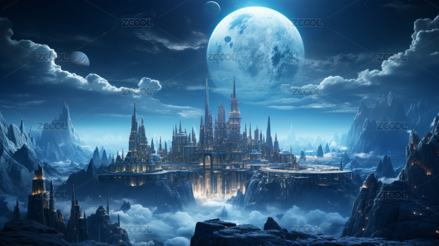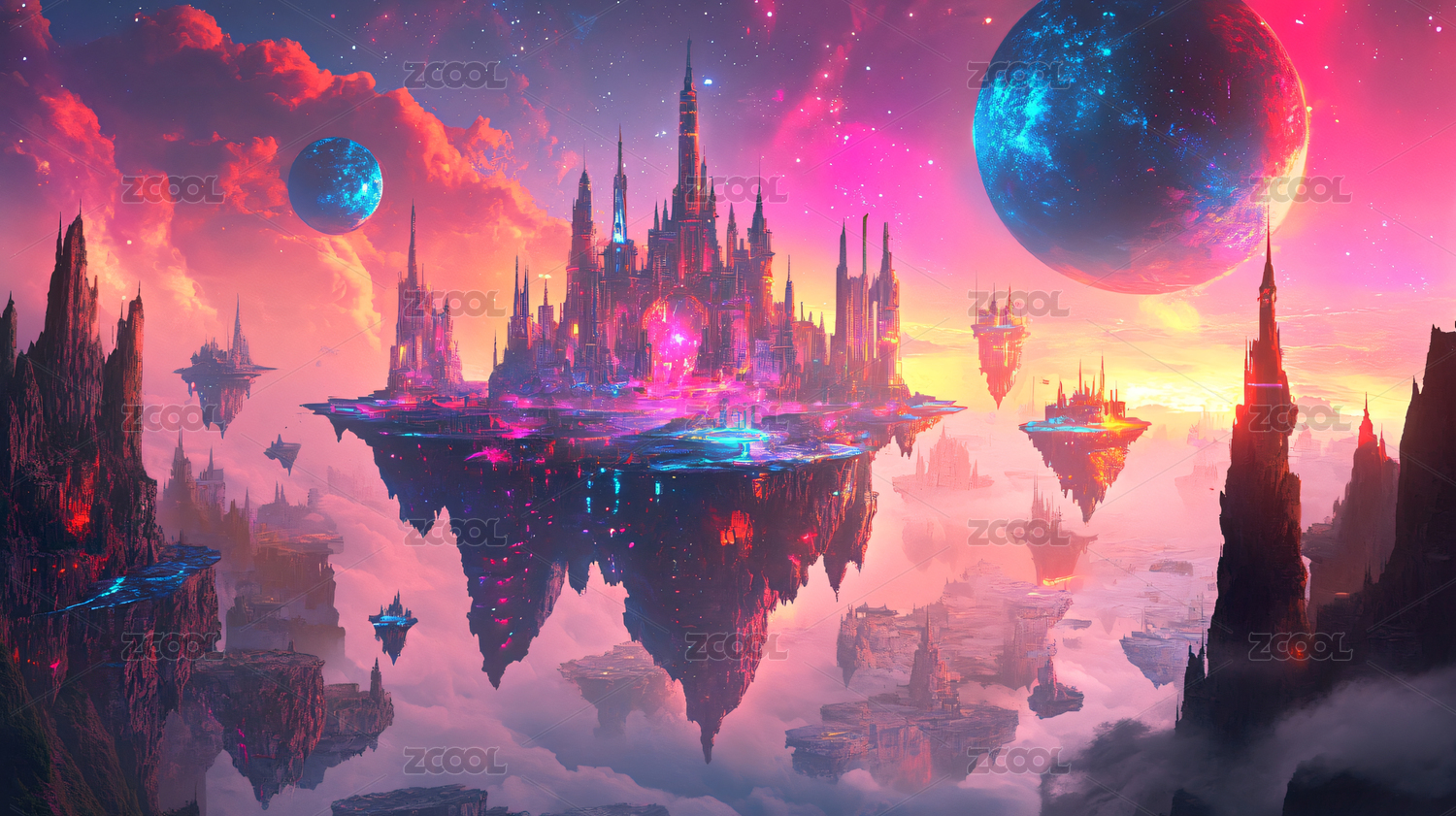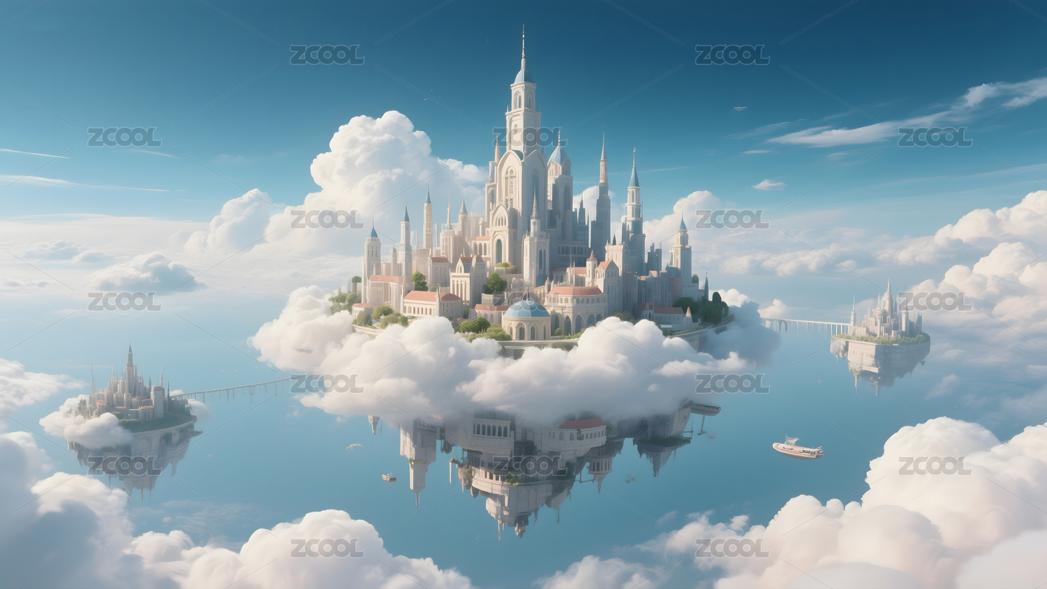 空中岛屿天空之城彩云梦幻唯美创意设计艺术