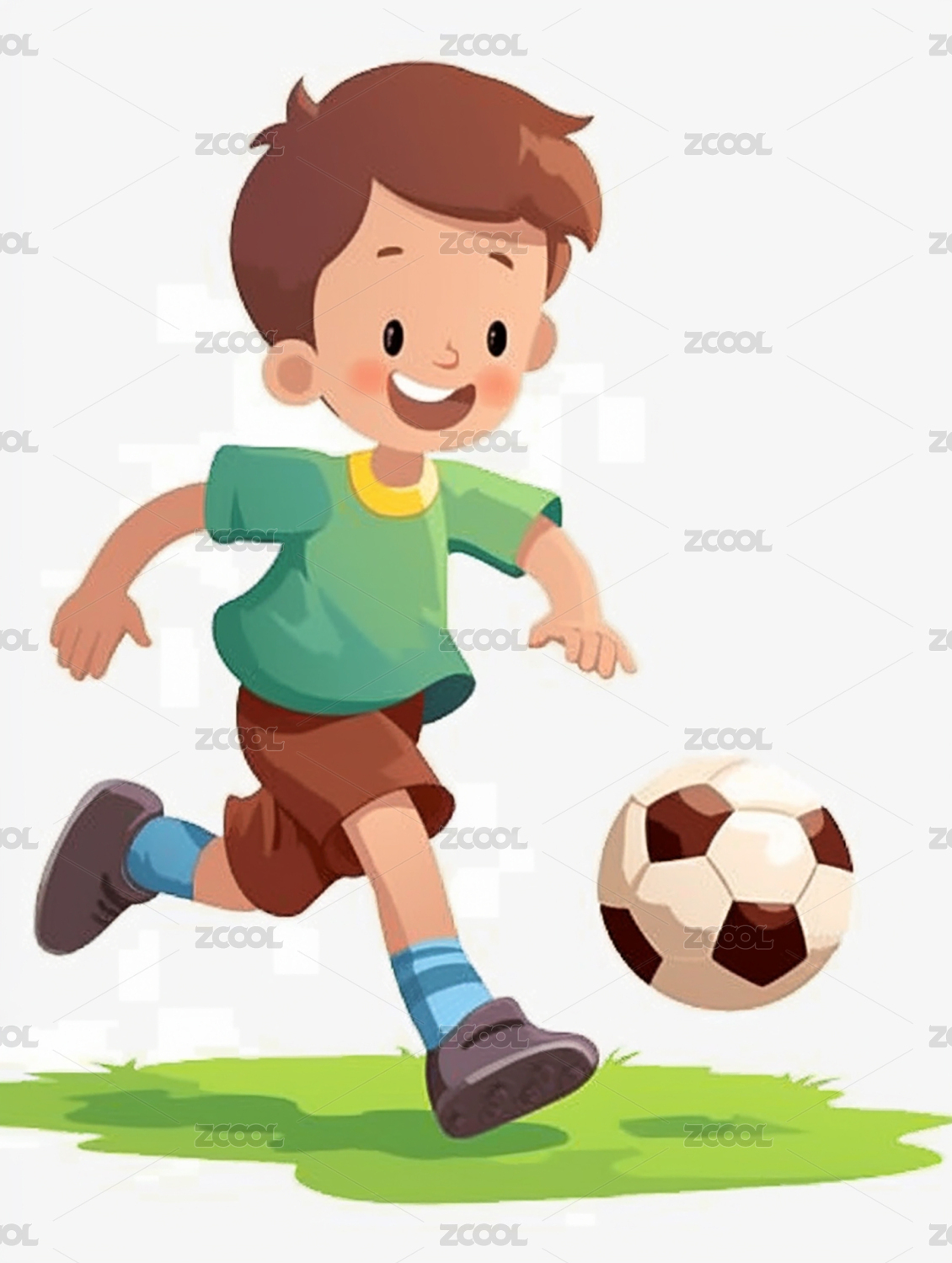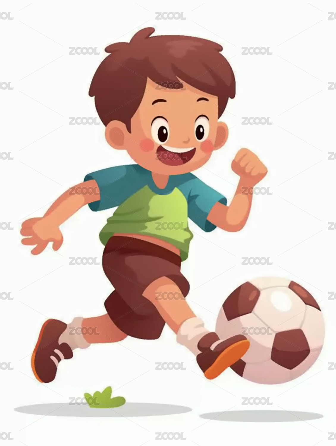 扁平插画风格男孩踢足球