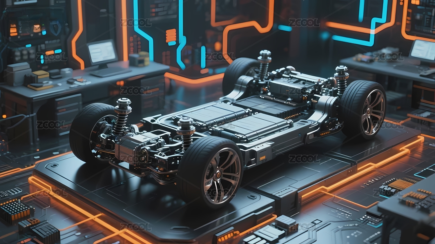 新能源电动汽车电池底盘科技感结构
