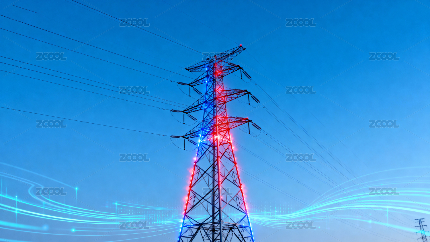 电力塔架与光轨交织的科技感画面