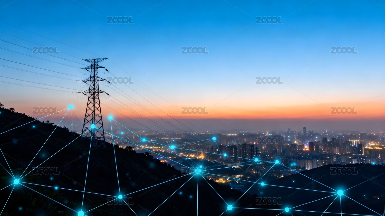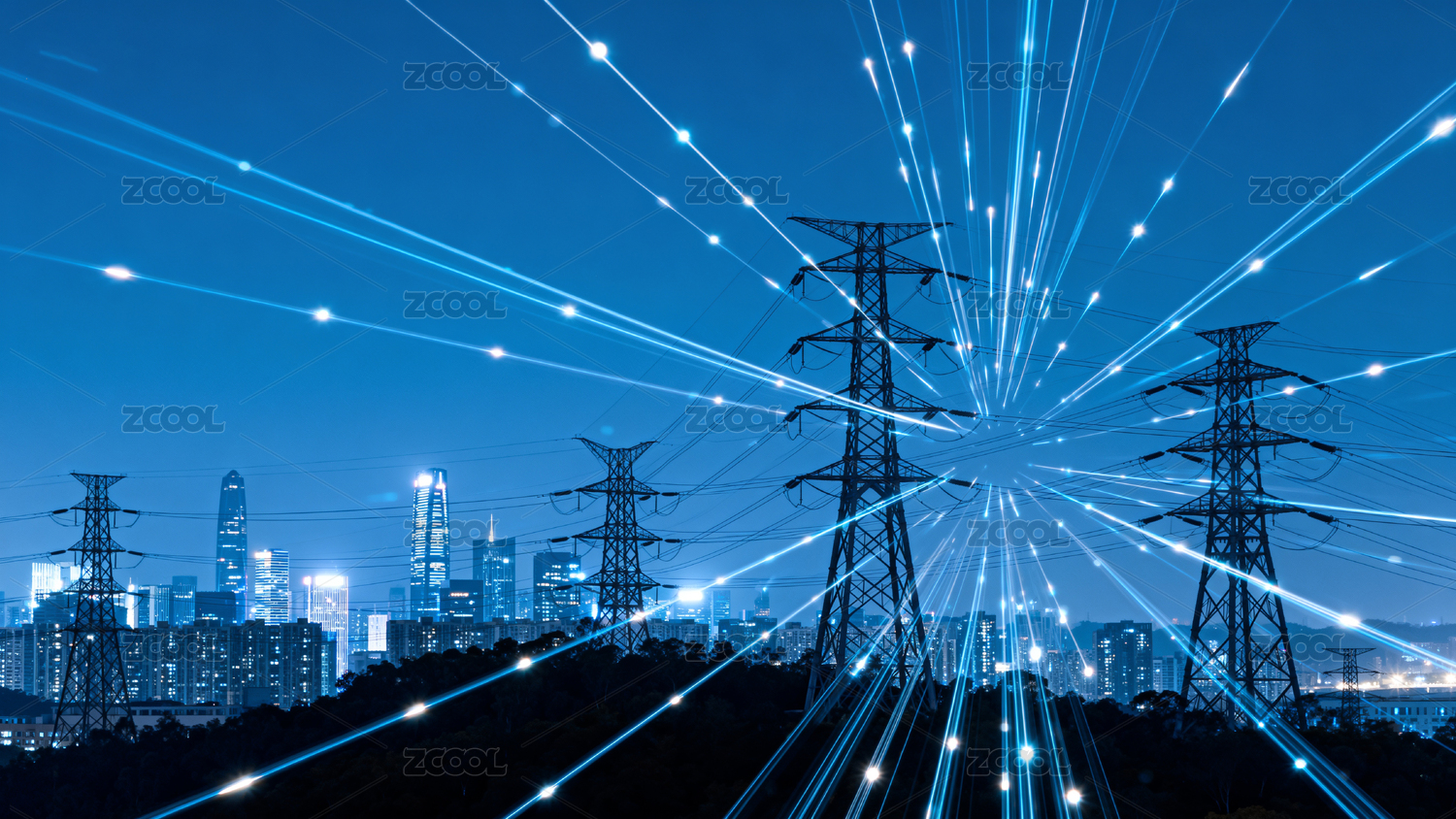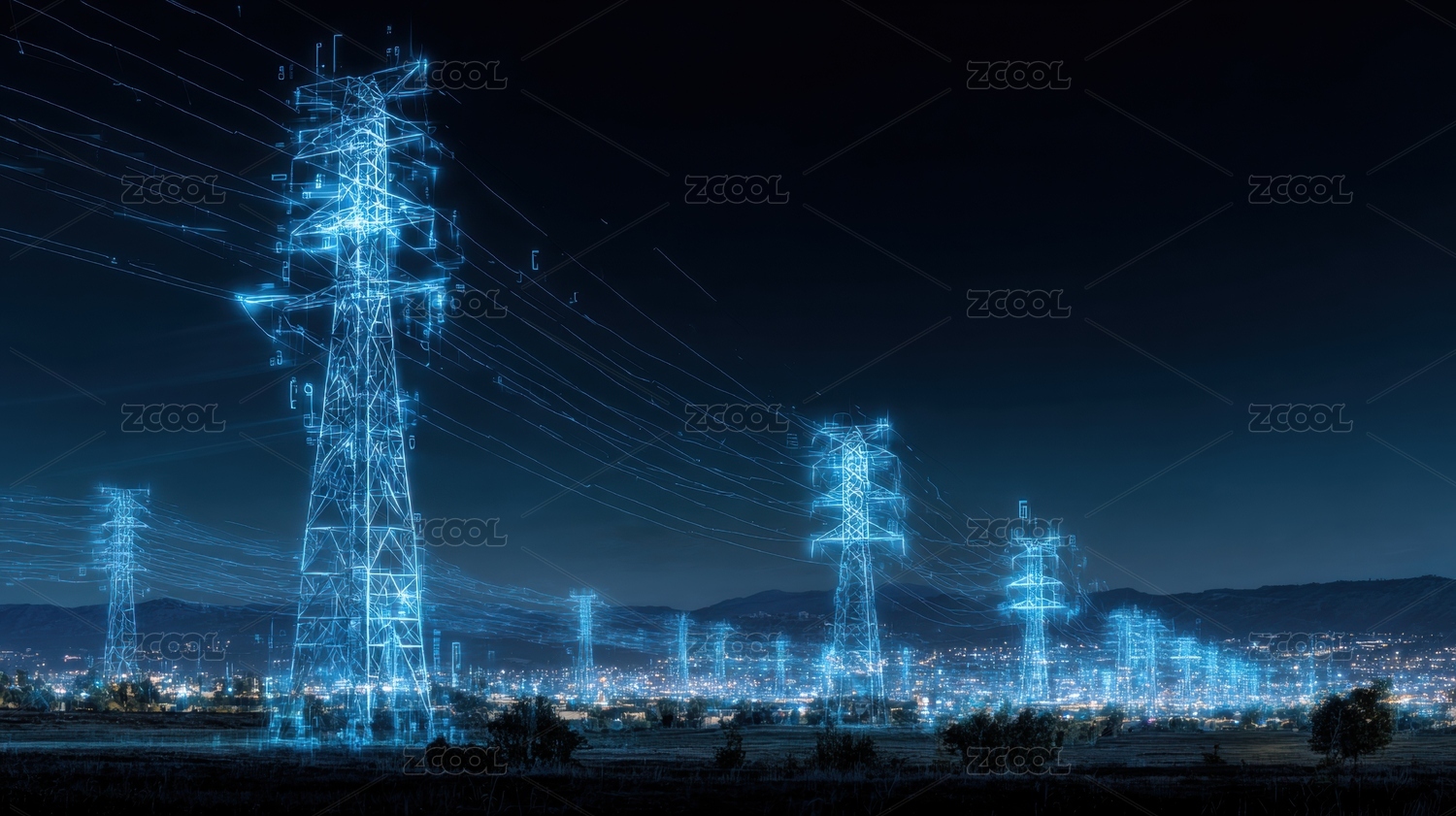 城市夜景与电力网络交织图