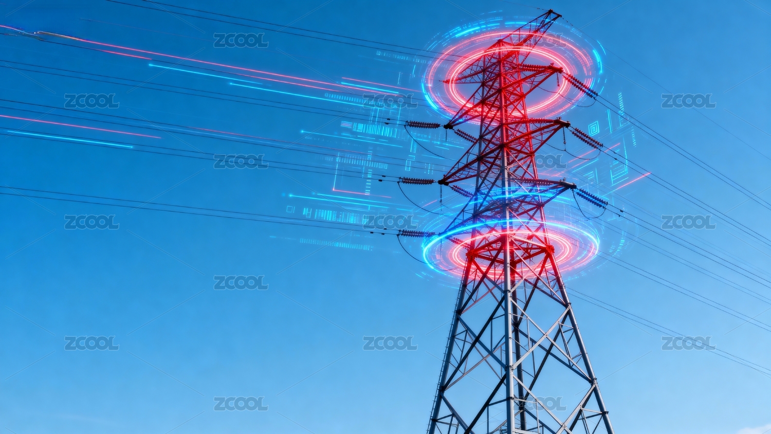 高压电塔与科技光环同框