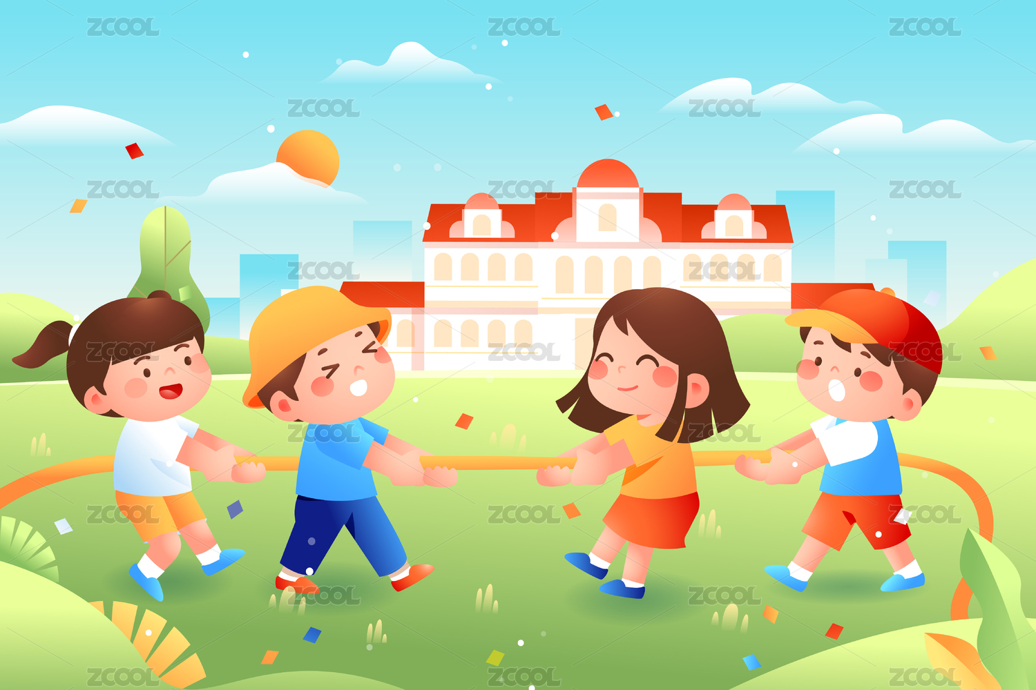 放风筝踢球拿起球晃呼啦圈的小朋友