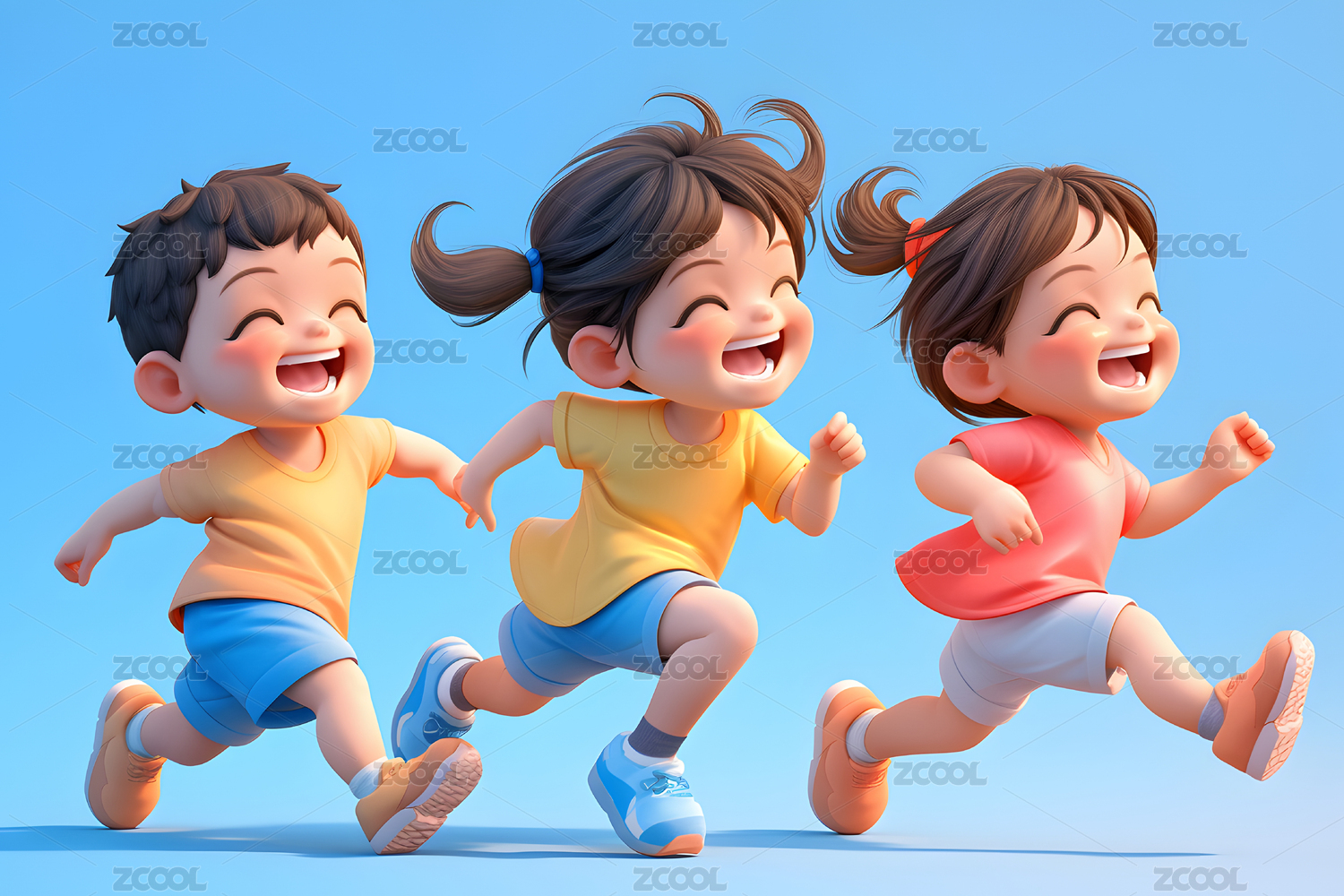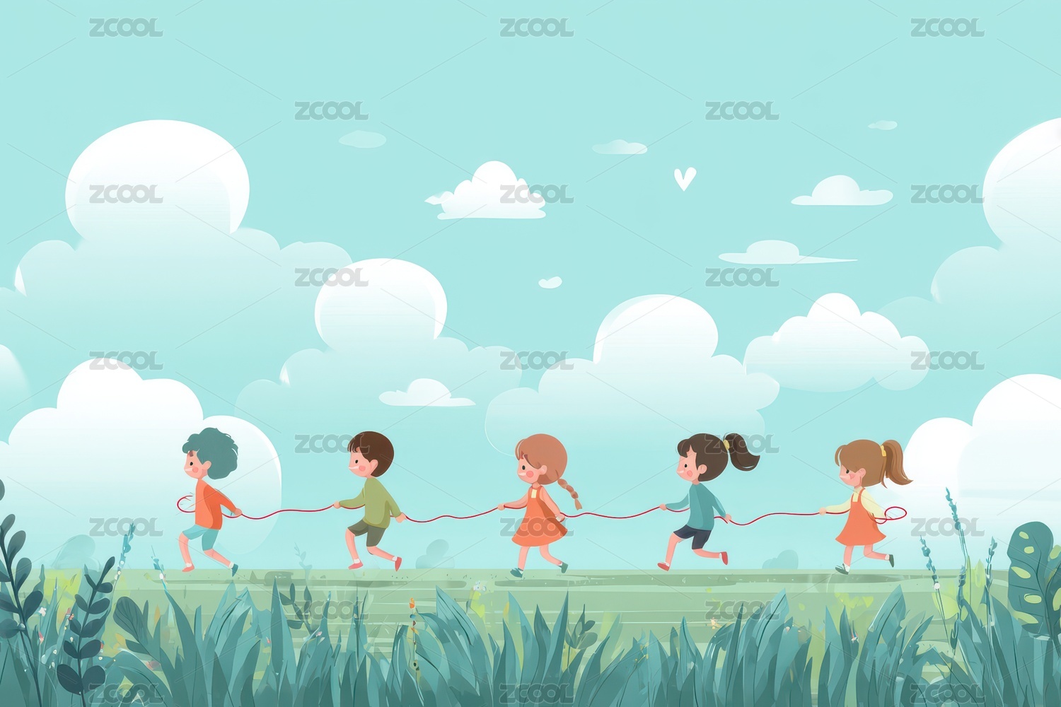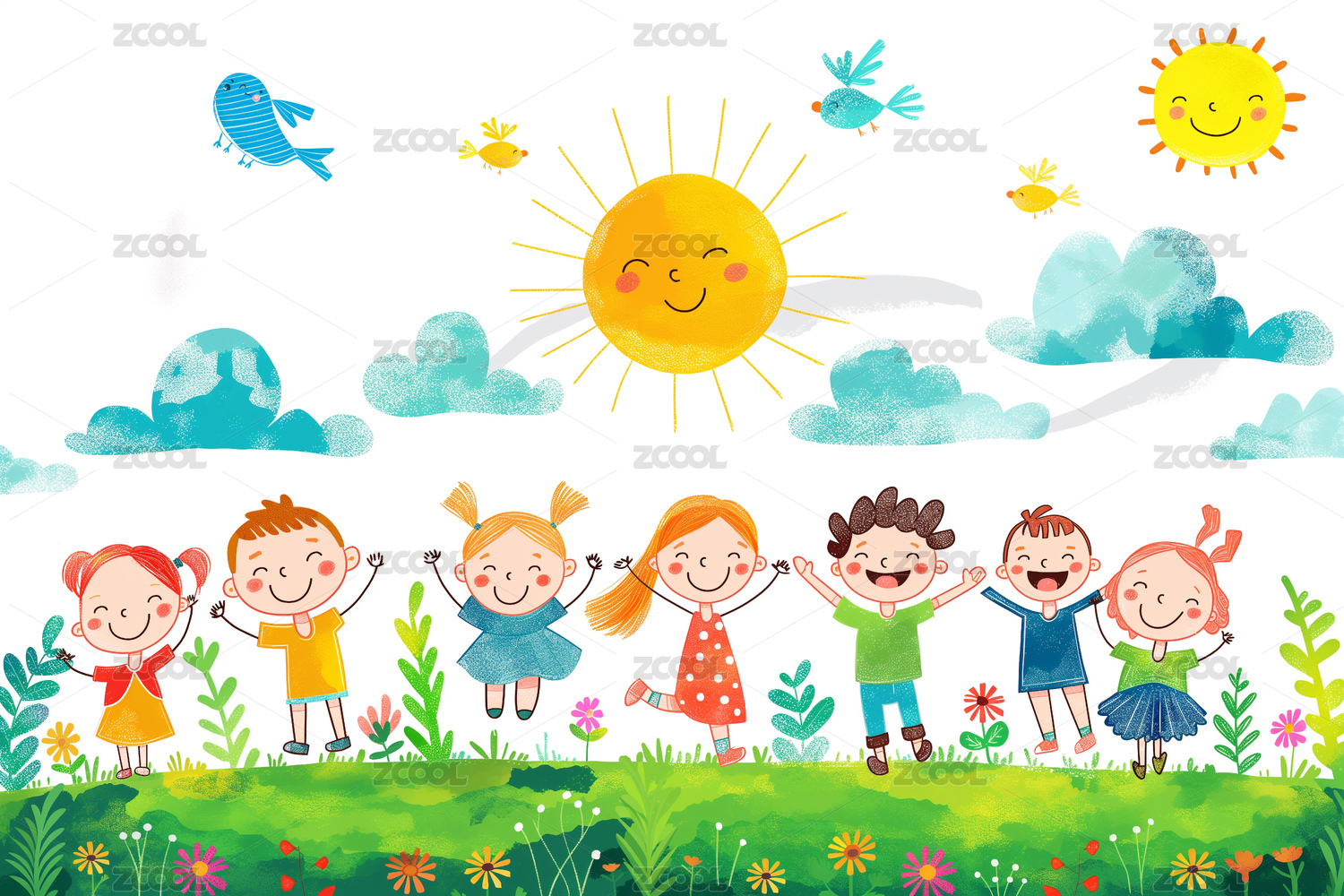 六个小孩穿着漂亮衣服欢快的过六一儿童节