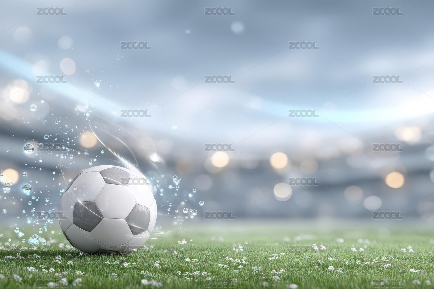一个伴有光效和烟雾效果的足球在橙色背景上