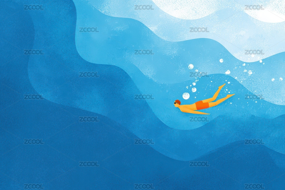 卡通水下游泳抽象背景