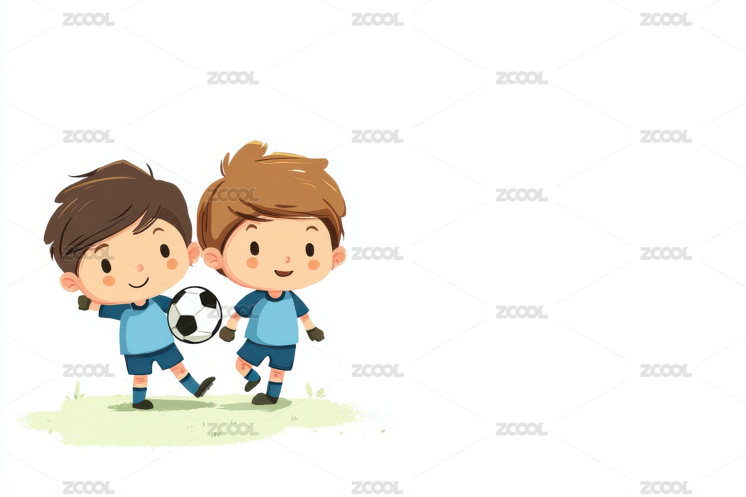 小孩踢足球运动儿童运动会比赛插画矢量图