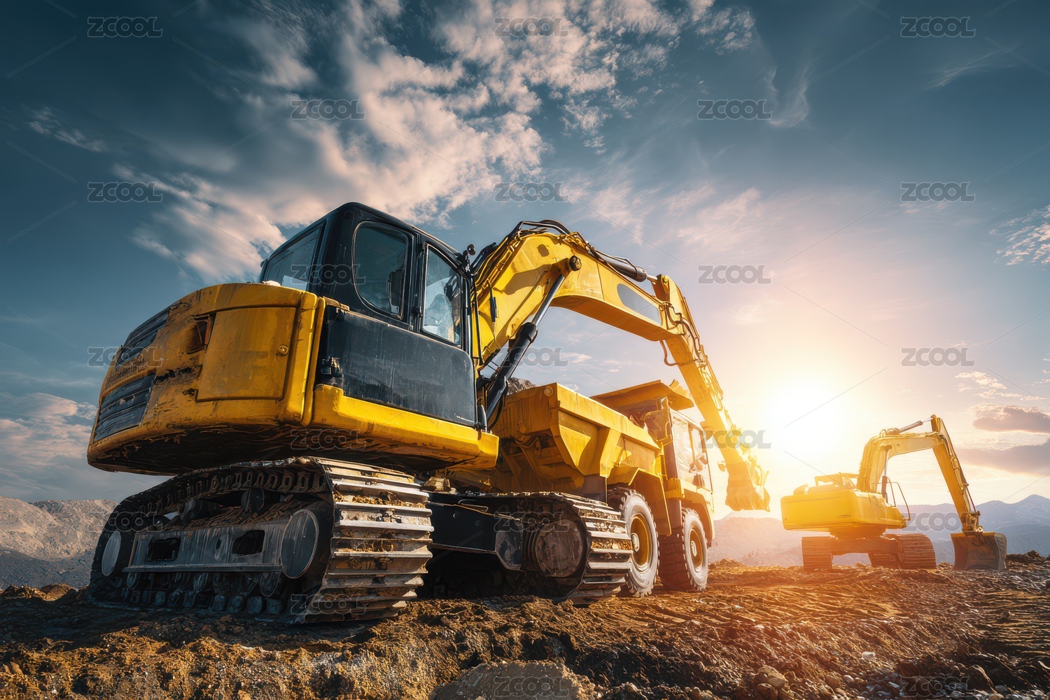 卡车,工地,作业,挖掘机,机械,日落,泥土,灯光