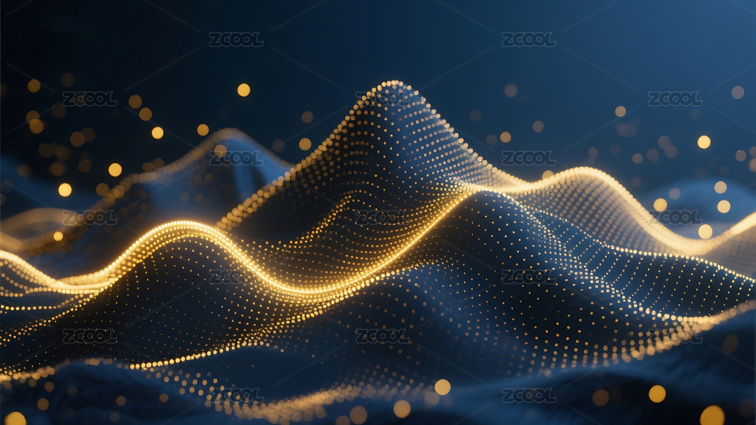 金色点光光斑蓝色科技感波浪起伏背景