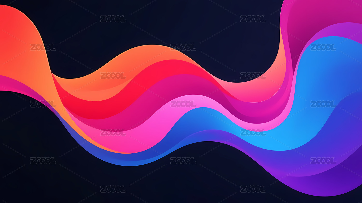 波浪,渐变,色彩,曲线,动感,蓝色,紫色,橙色,抽象,层次