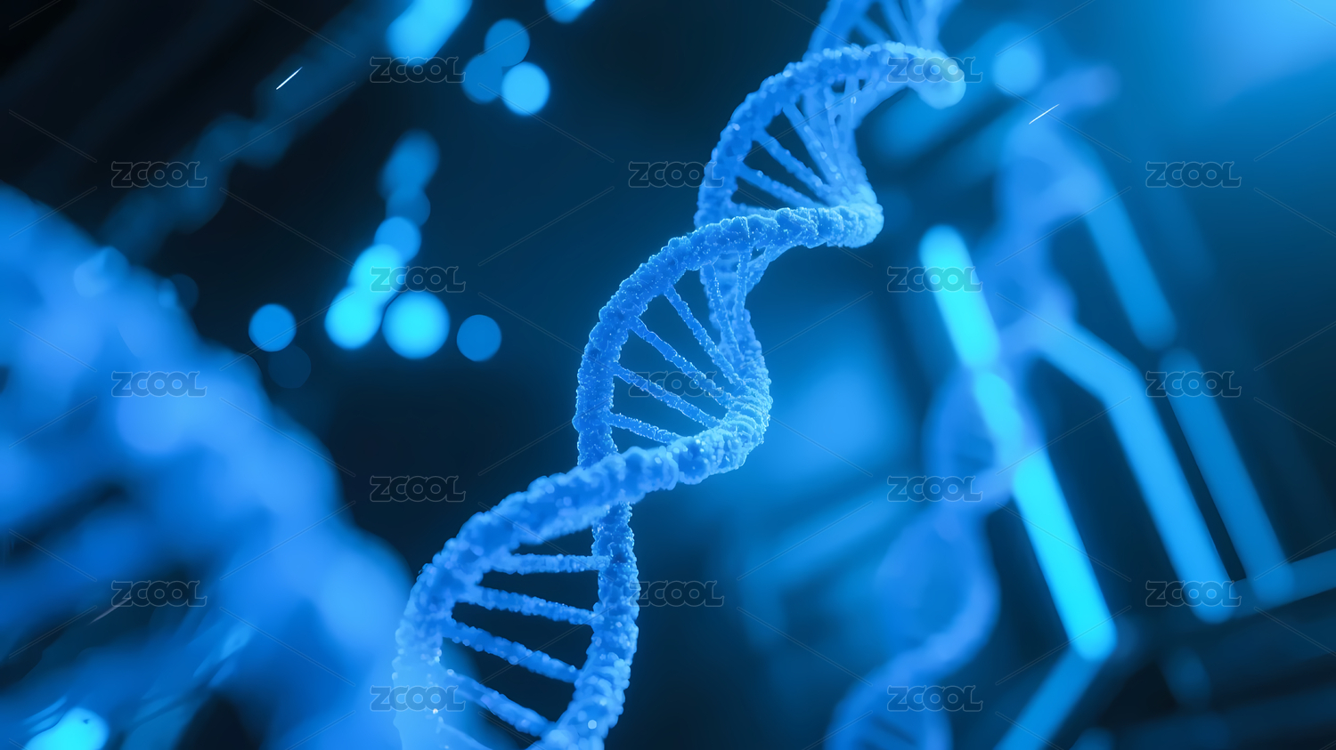 模糊背景蓝色DNA结构