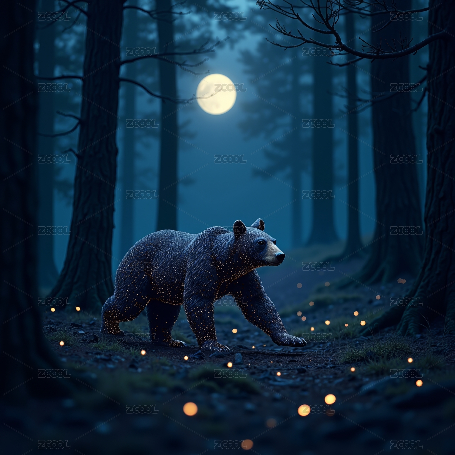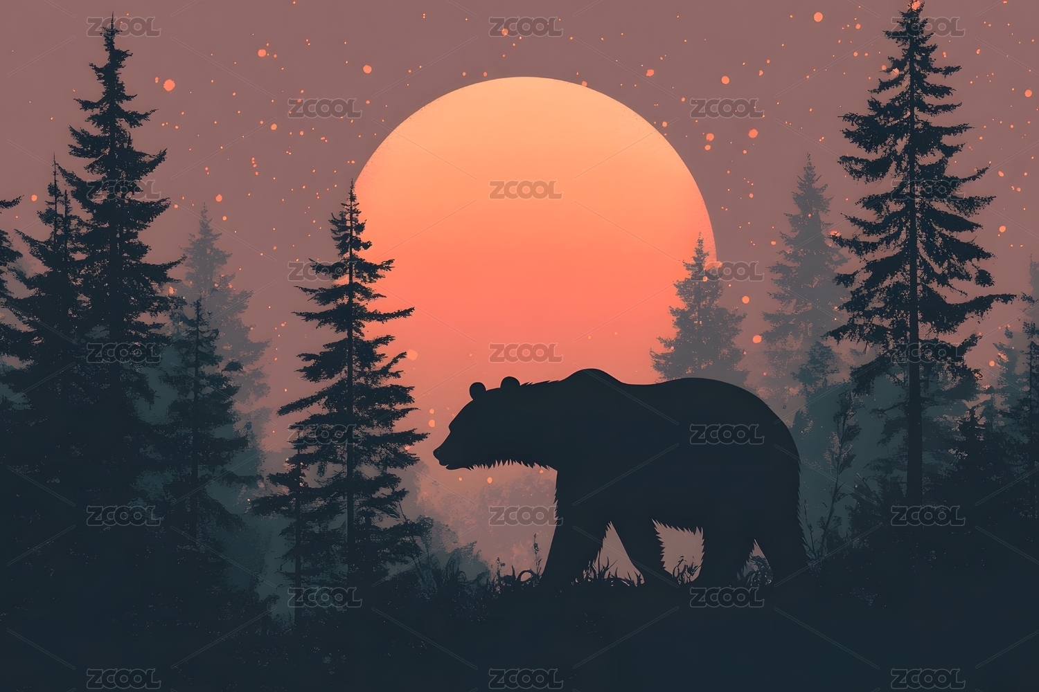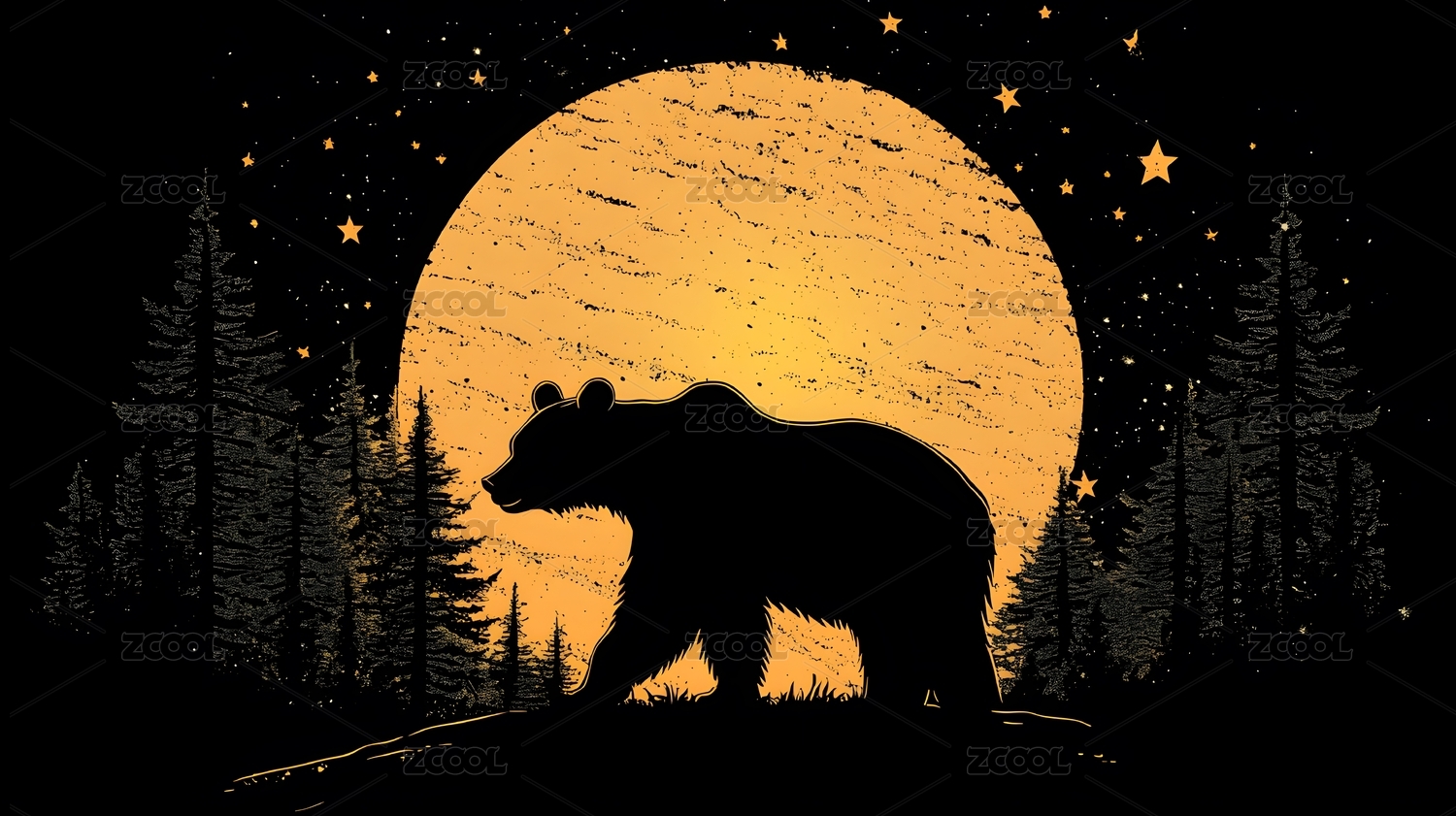 自然,户外,神秘,光影,月夜,森林,剪影,树木,棕熊