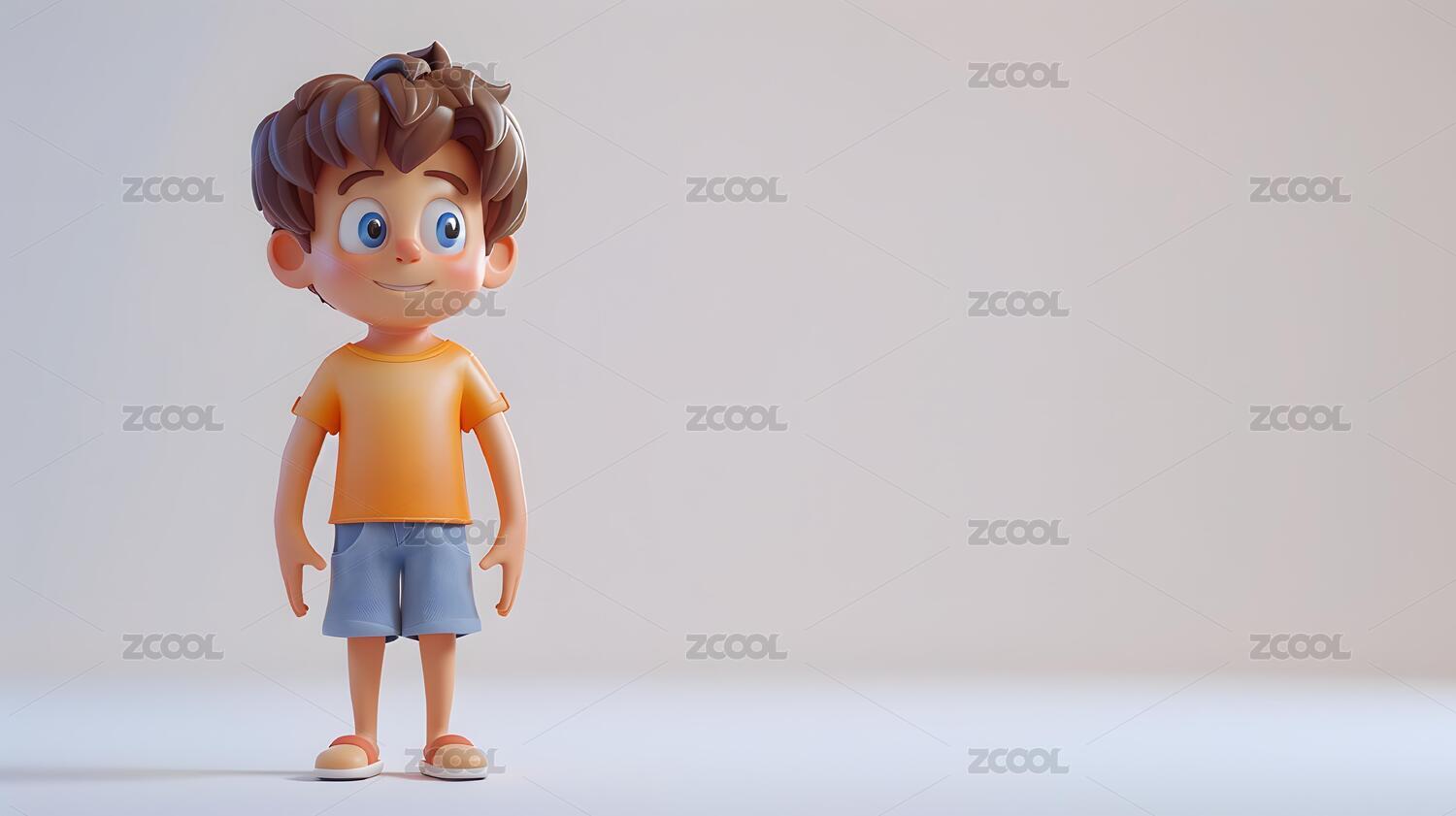 卡通,3D,建模,创意设计,可爱元素,黄衣男孩,暖光背景,色彩搭配,俏皮姿态,彩色相机