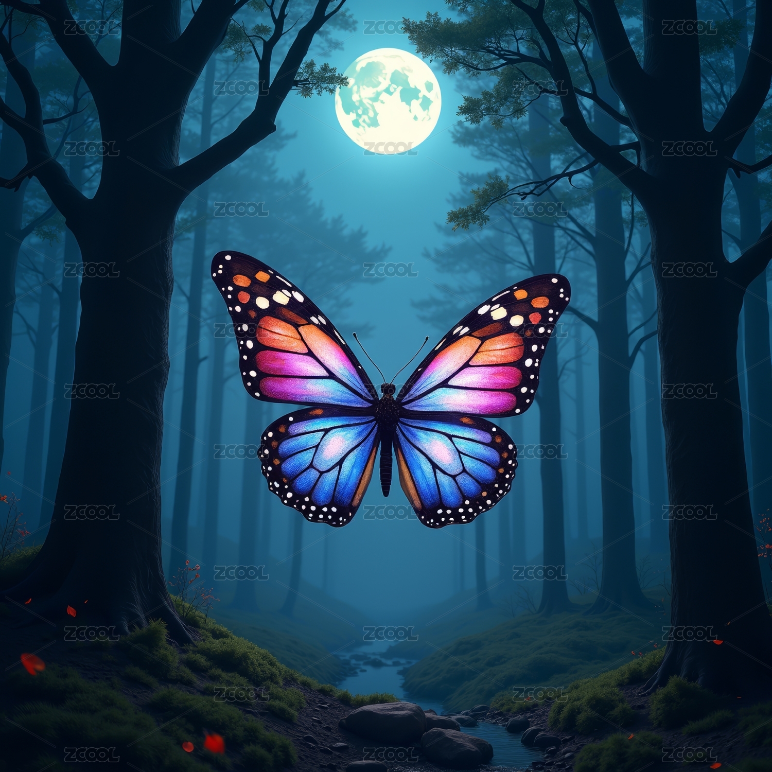 自然,户外,神秘,光影,运动,美丽,林间,月光,蝴蝶