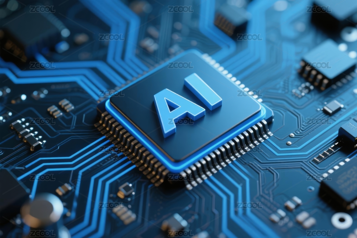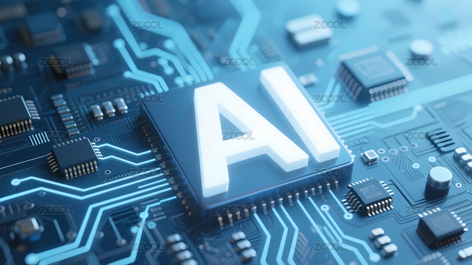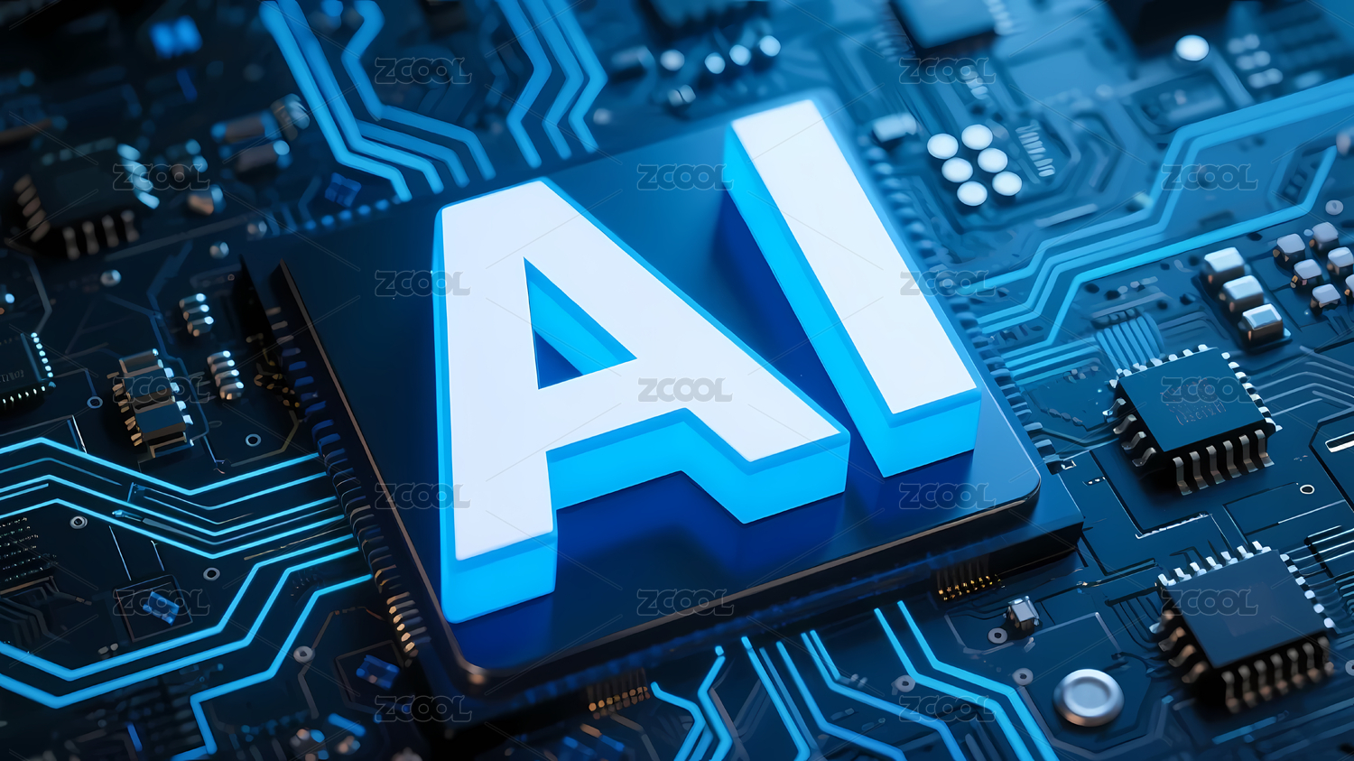 蓝色“AI”标志与电路板