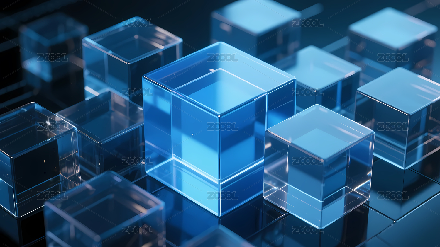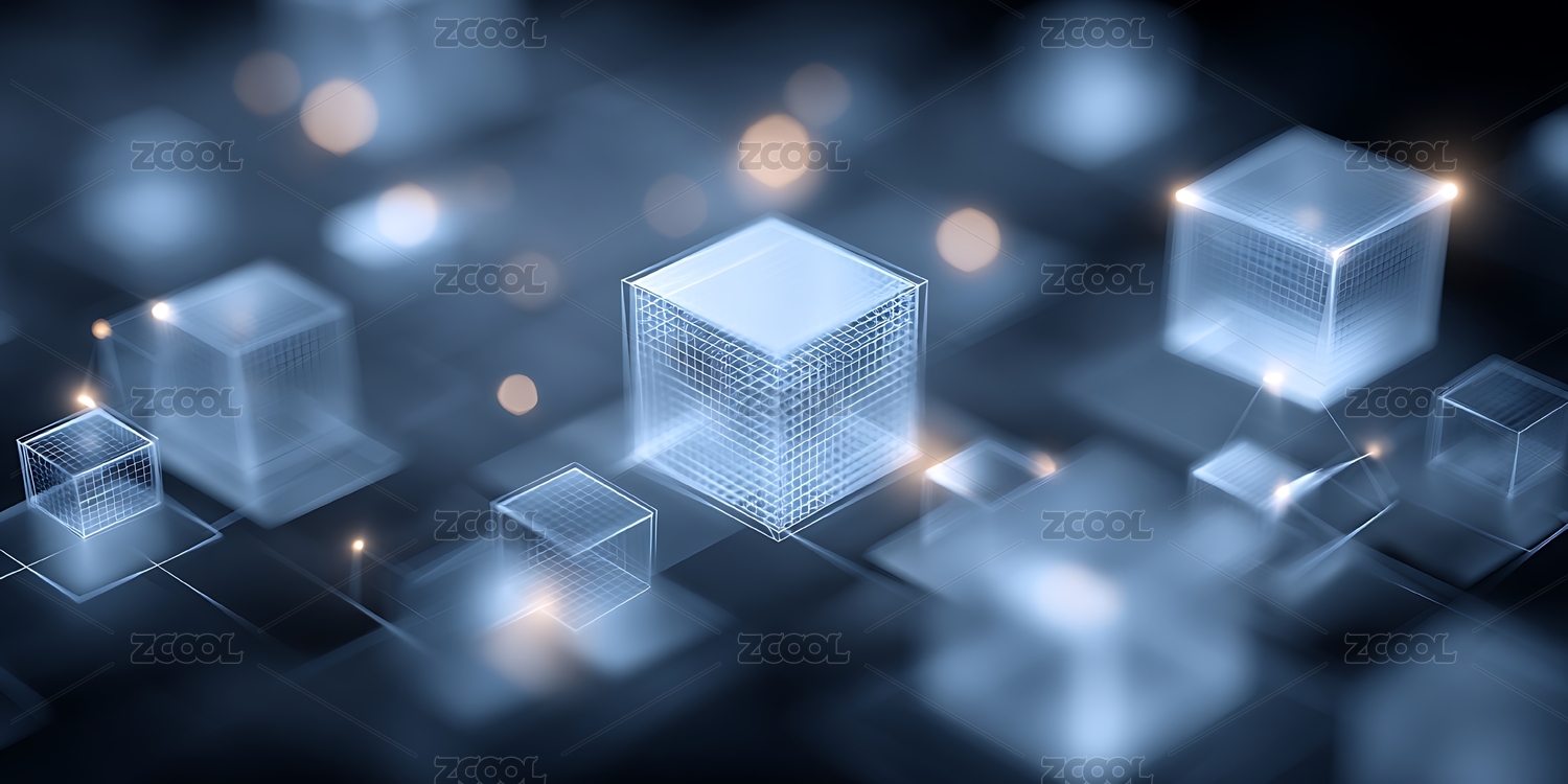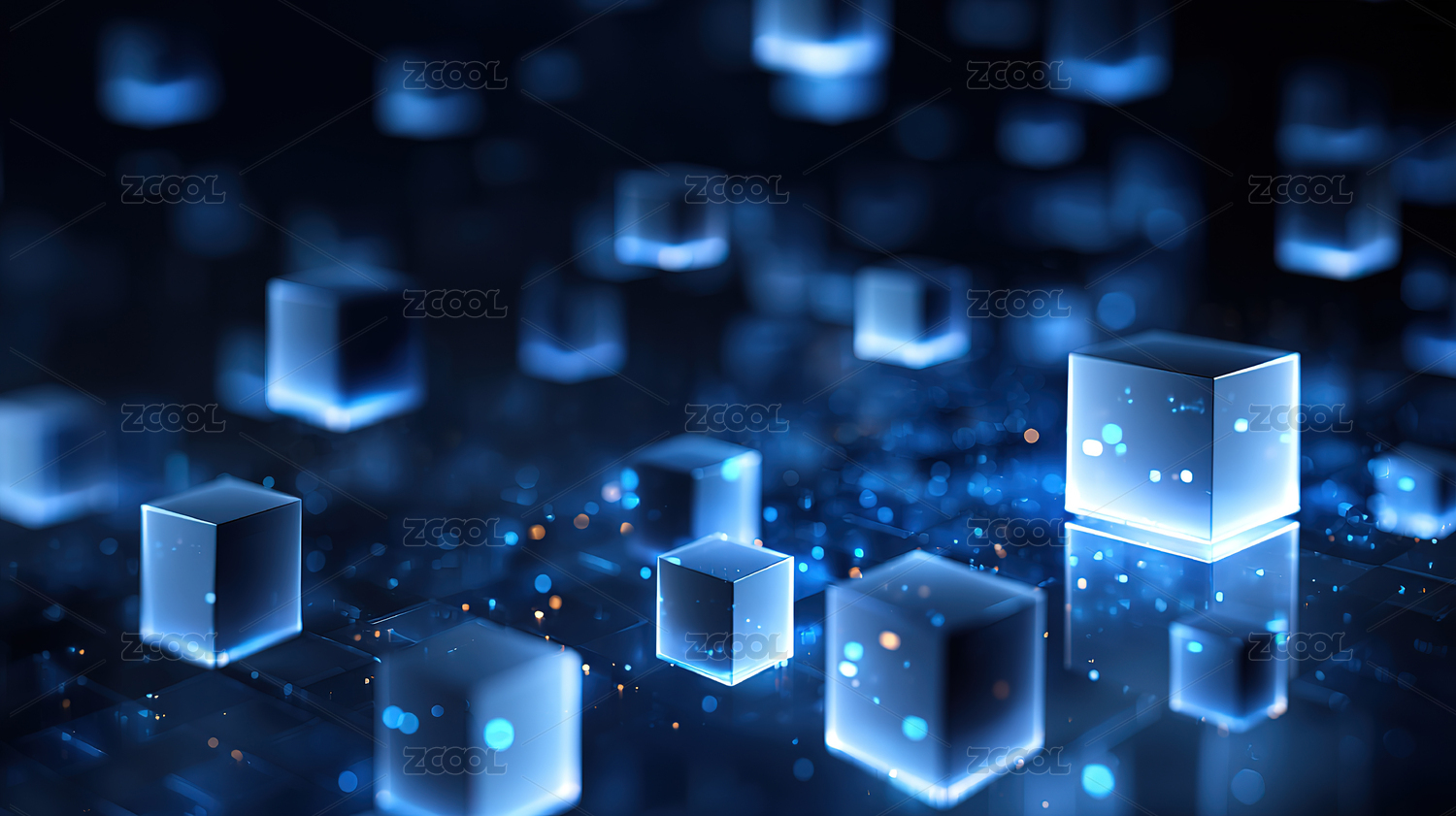 蓝色,点状,背景,发光,结构,光斑,深蓝,金色,立方体,透明